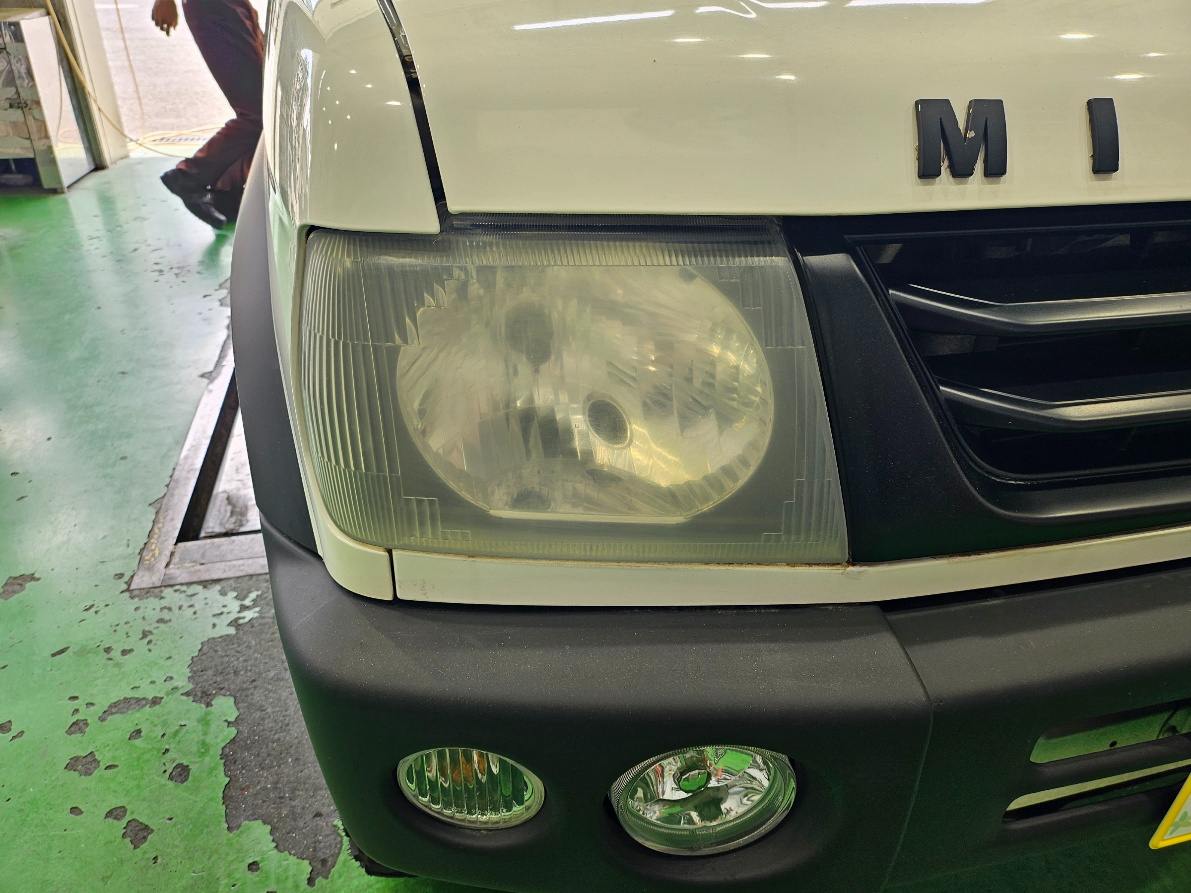 三菱パジェロミニにヘッドライトスチーマーコーティング施工致しました。