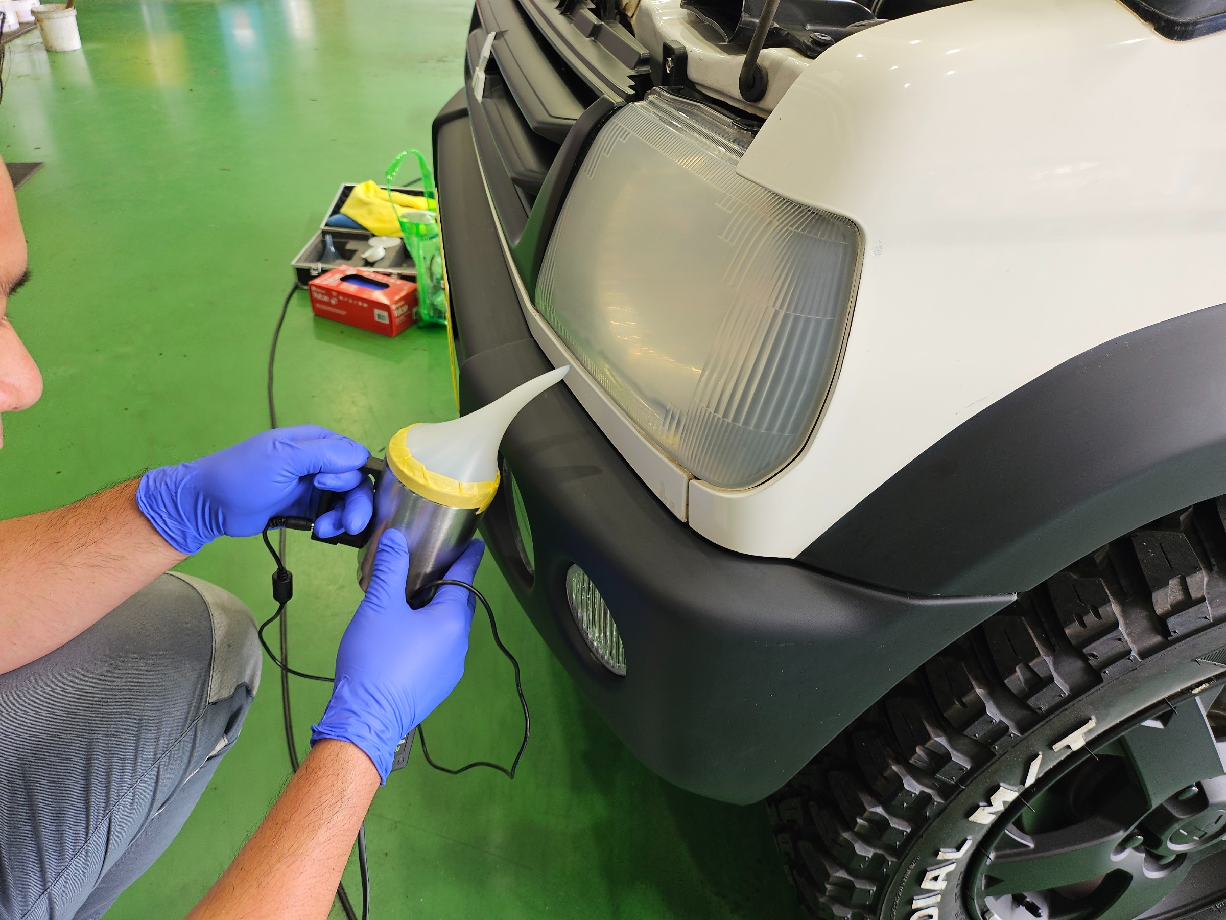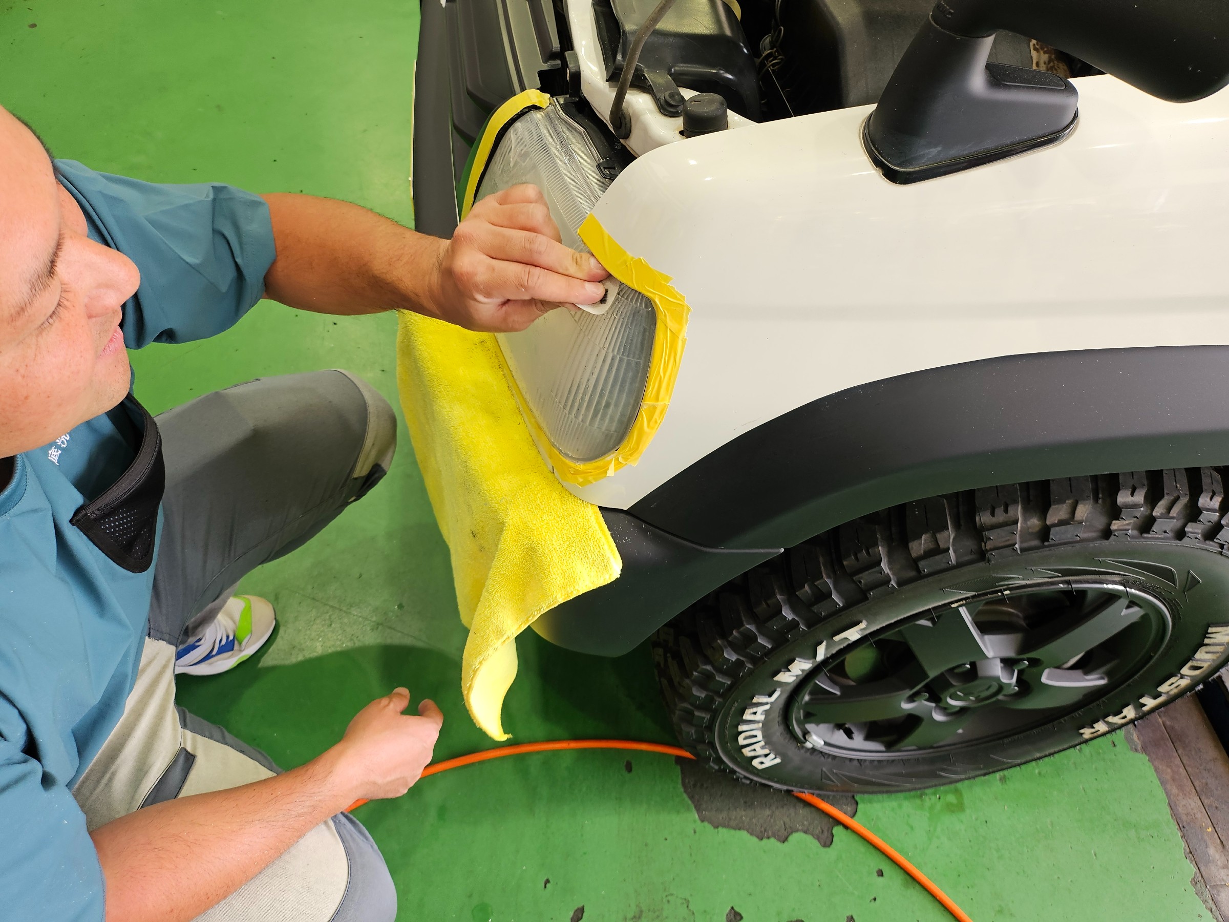 三菱 パジェロミニ ヘッドライトスチーマーコーティング施工