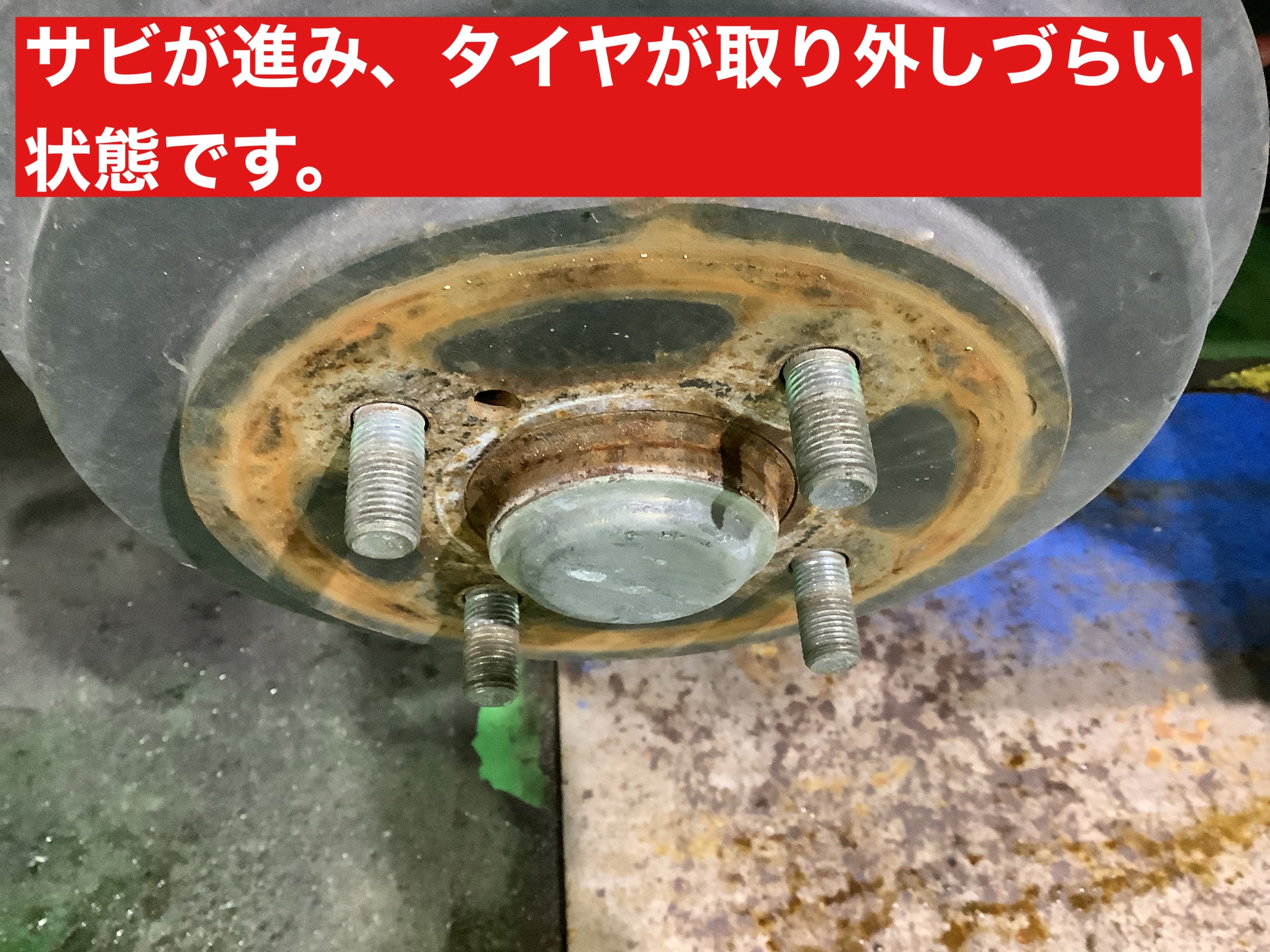 タイヤ組替のためにタイヤを外すときになかなか外れなかったため確認したところ、ハブ部分の錆がかなり進行していました。