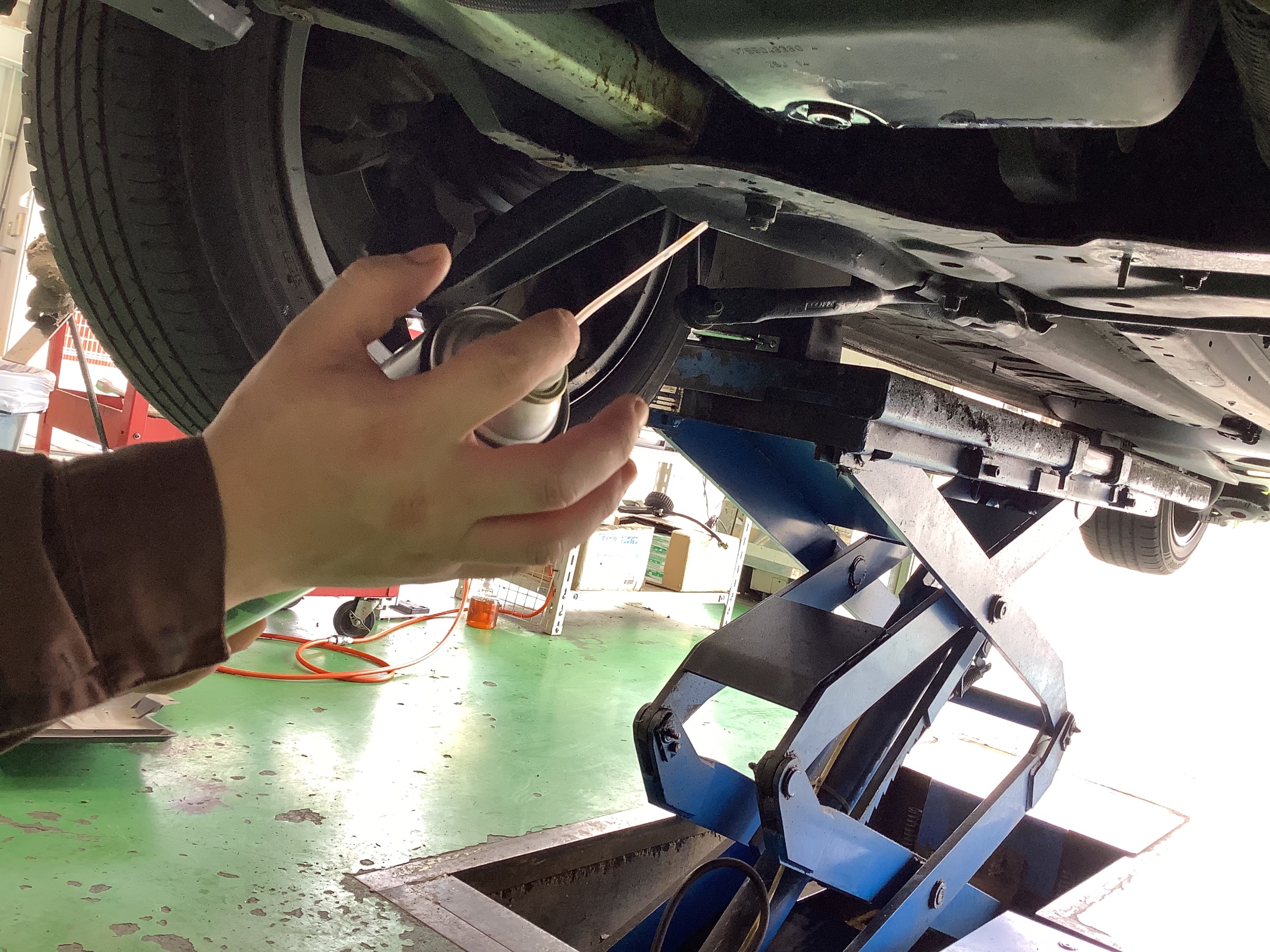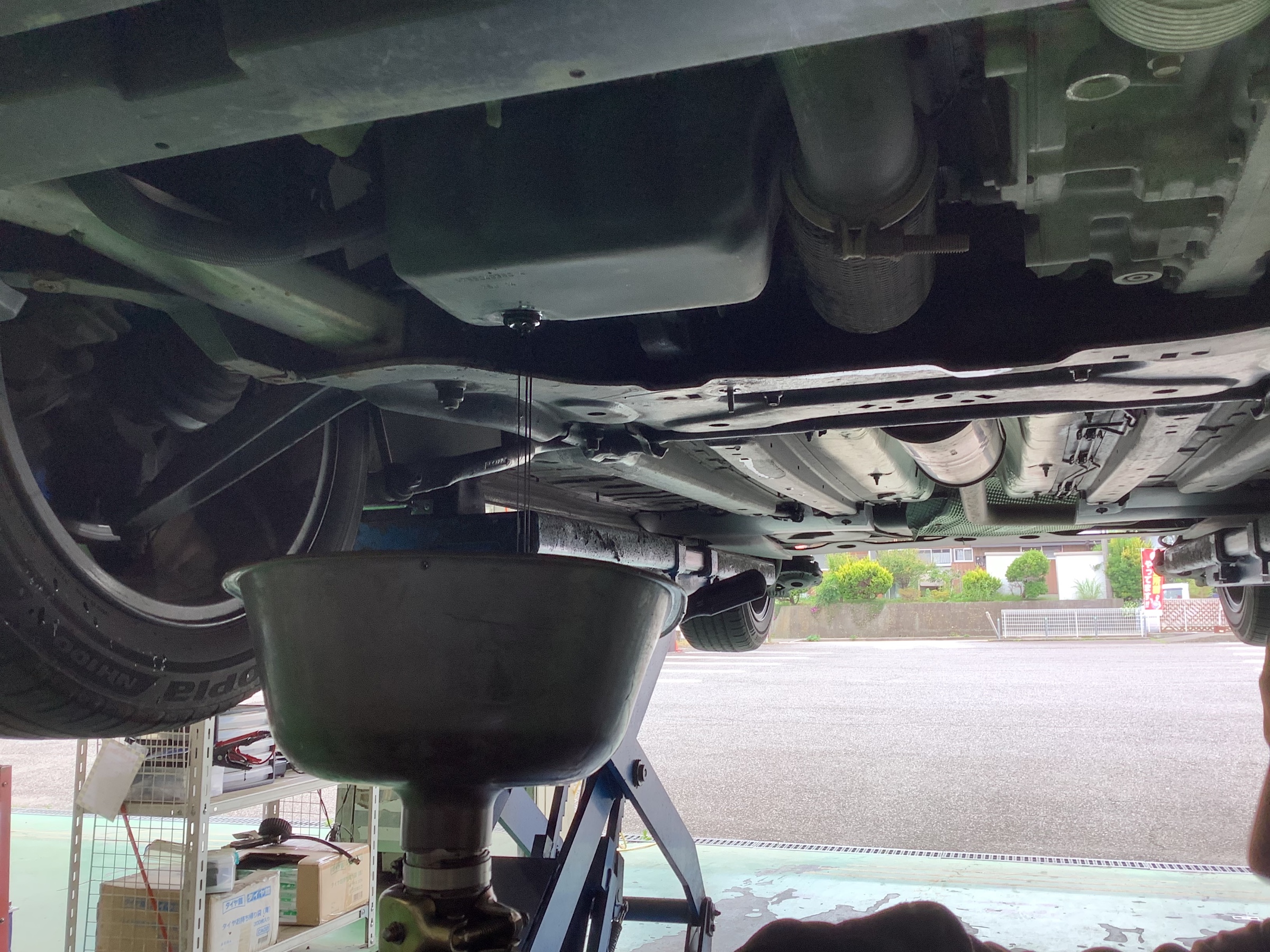 適量注入後はエンジンを始動し、リフトアップしてドレンプラグからの漏れがないかどうか確認します。