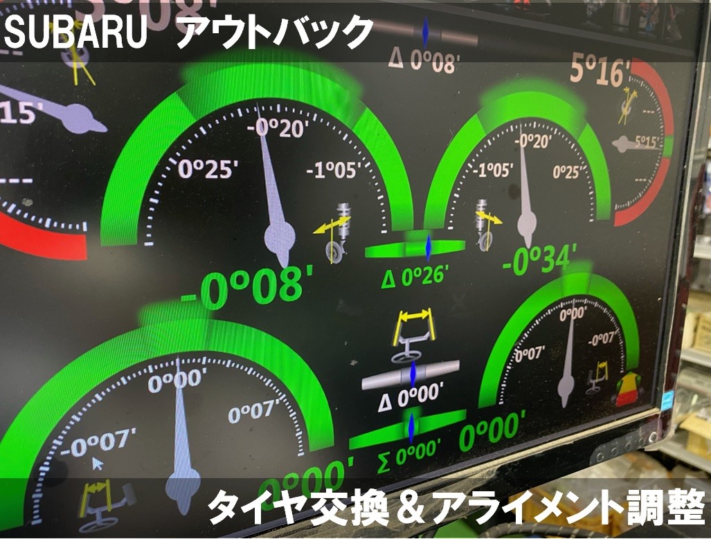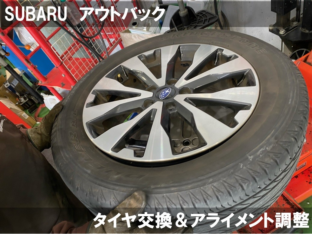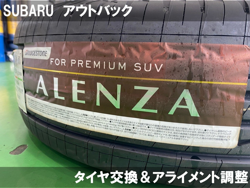 SUBARU アウトバック タイヤ交換 ポスト 2024年7月2日 SUBARU アウトバック タイヤ交換とアライメント調整をさせていただきました! 今回お取り付けするのは ブリヂストン製 アレンザLX100 225/60R18 LX100は音が静かで乗り心地がいいタイヤとなっております。 組み換え、バランスと取り付けをしたら アライメント調整です!! アウトバックは前後のトゥ調整が可能です! 基準値に調整し作業終了です! 時間は1時間程でした。 本日はご来店いただきありがとうございました。 カテゴリ:タイヤ関連