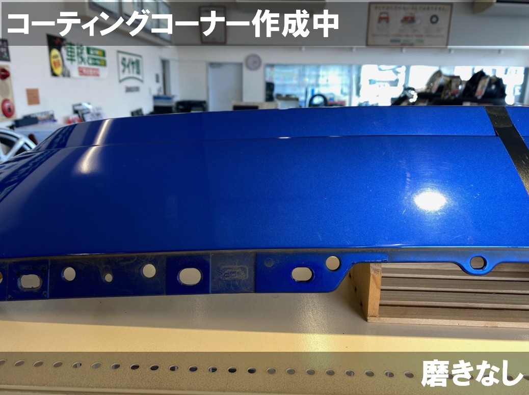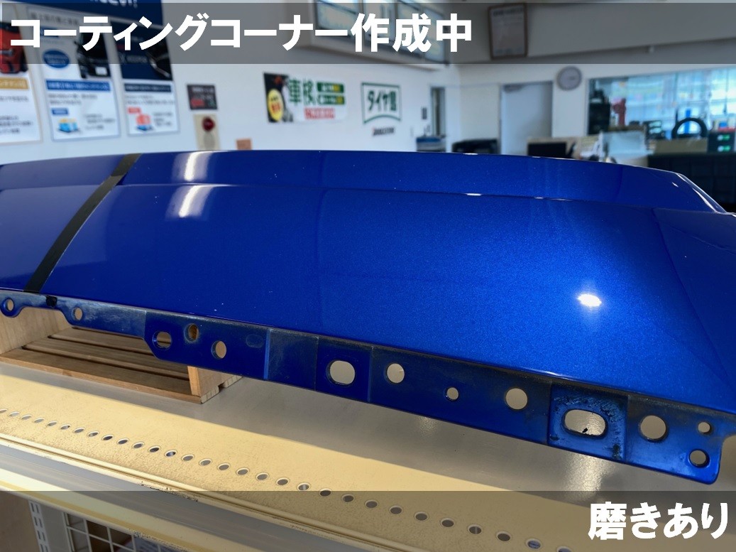 ボディ磨き&コーティング実施中!! ポスト 2024年7月5日 ボディ磨き&コーティング実施中!! 店内の展示用見本バンパーを磨き施工してもらいました!! 当店ではお店にコーティング屋さんが来てくれて磨きやコーティング施工をしてくれます! 写真でもわかるように、磨きあり・なしでは見栄えが全然違います! 小さく切ったバンパーですがコーティングのプロにお願いすると10分程でピカピカに磨きあがりました。 ボディコーティングのご相談はぜひ当店にお任せください! カテゴリ:コーティング関連 担当:星野