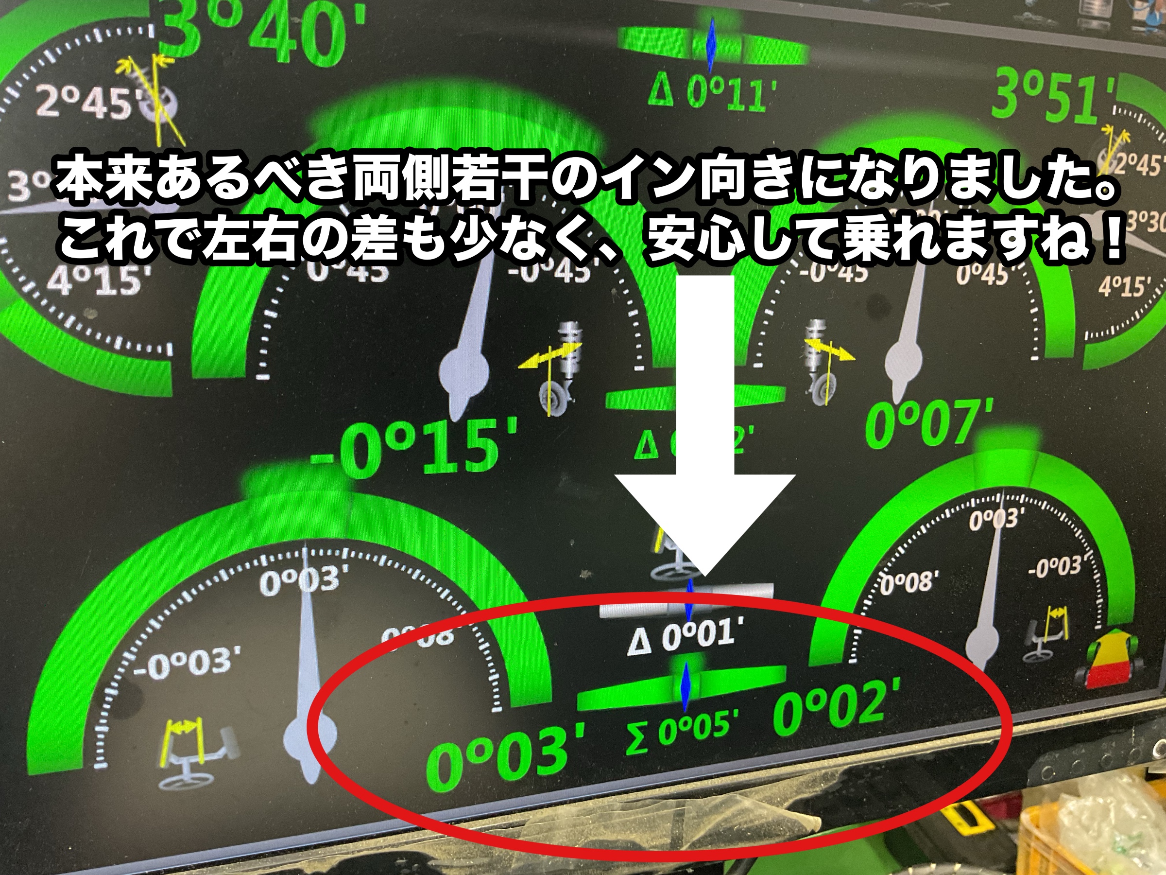 今回の調整ではメーカー推奨の若干の内向きにすることができました。