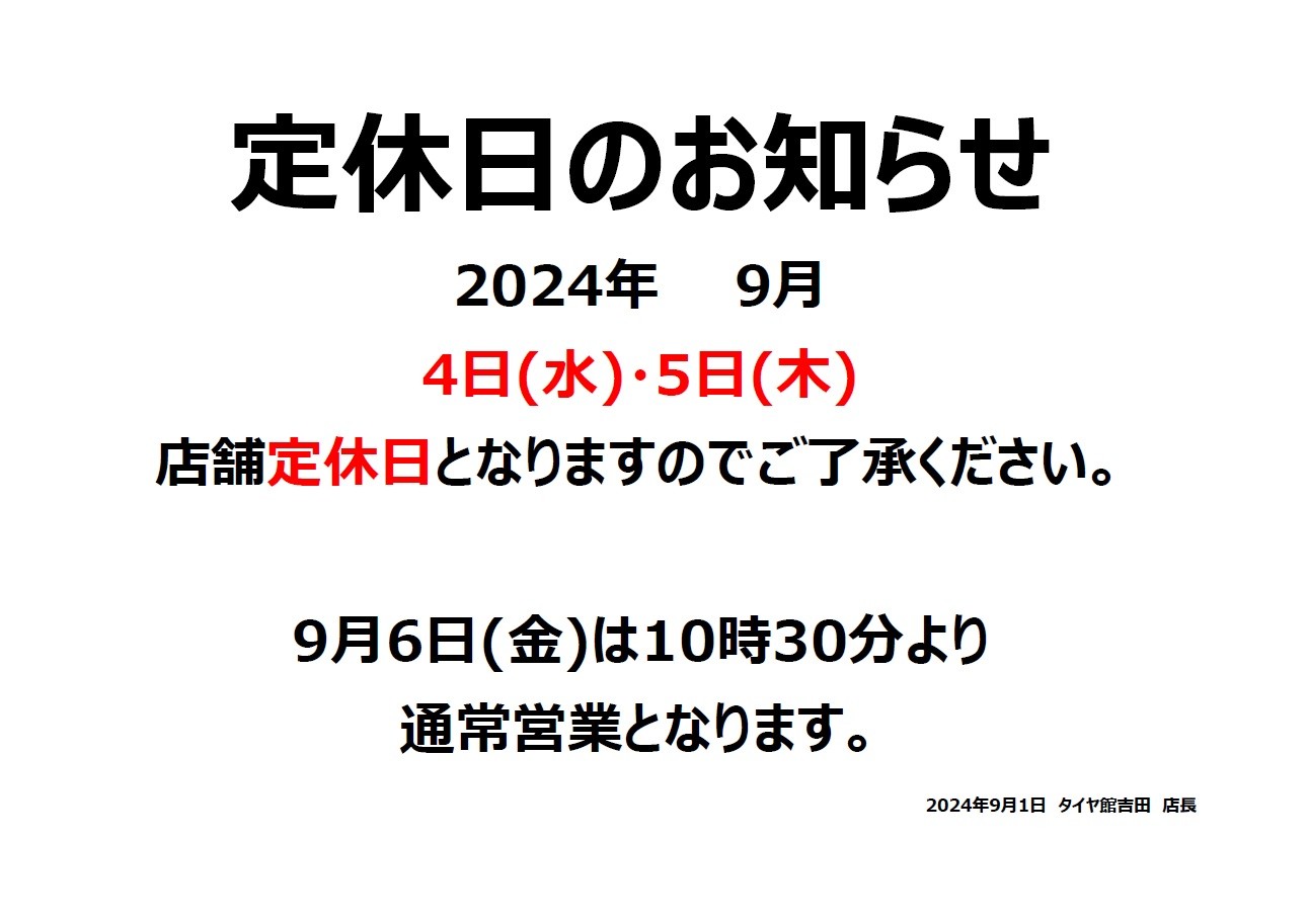 今月の定休日は