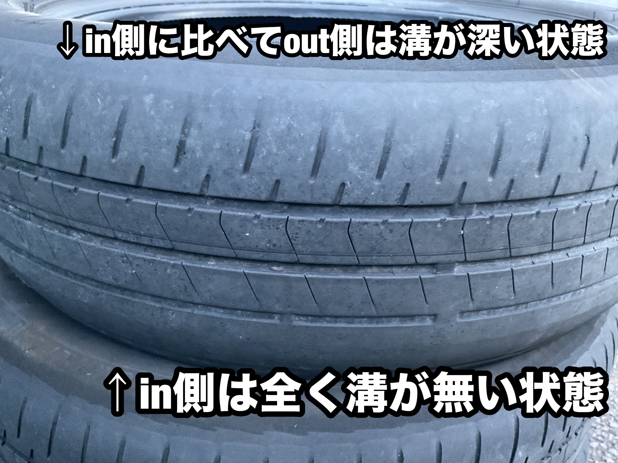 また、イン側とアウト側で残り溝に差が出ています。