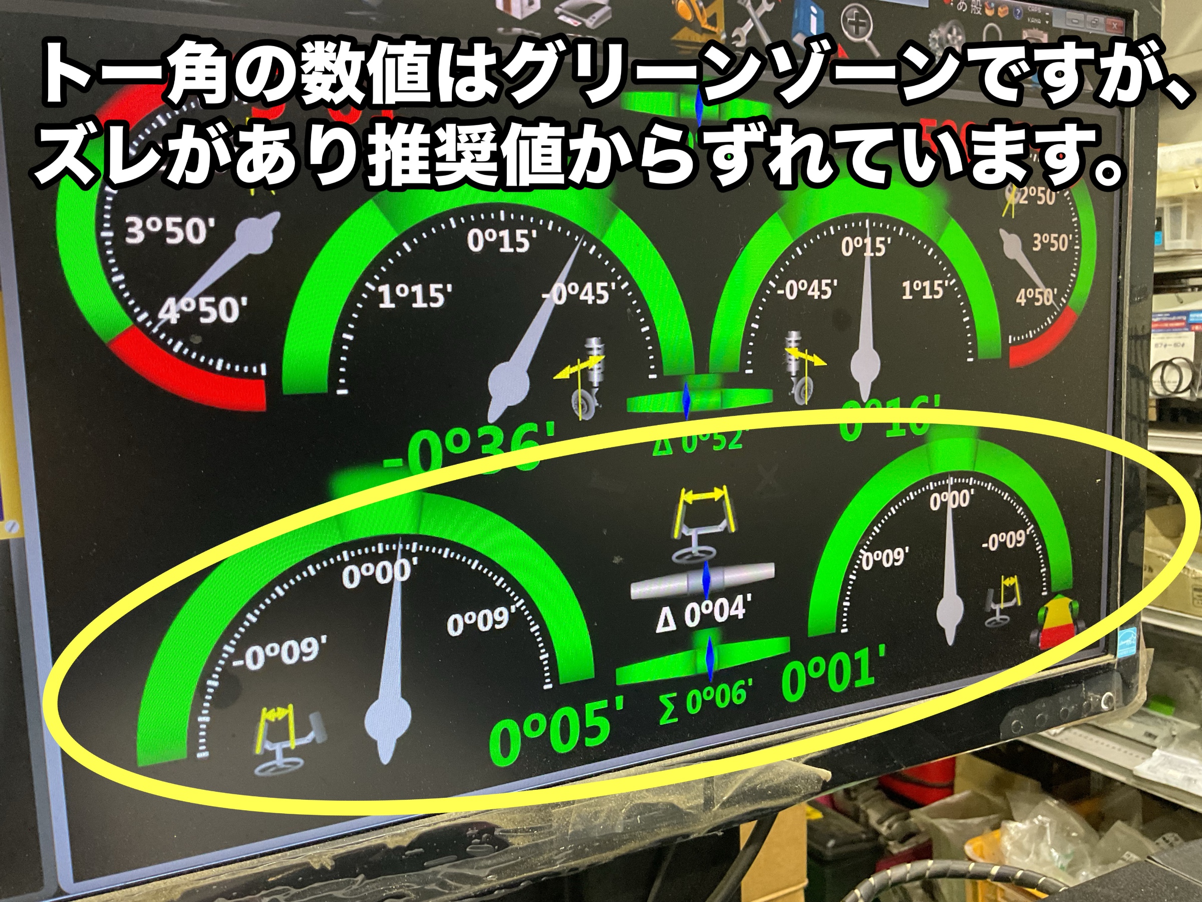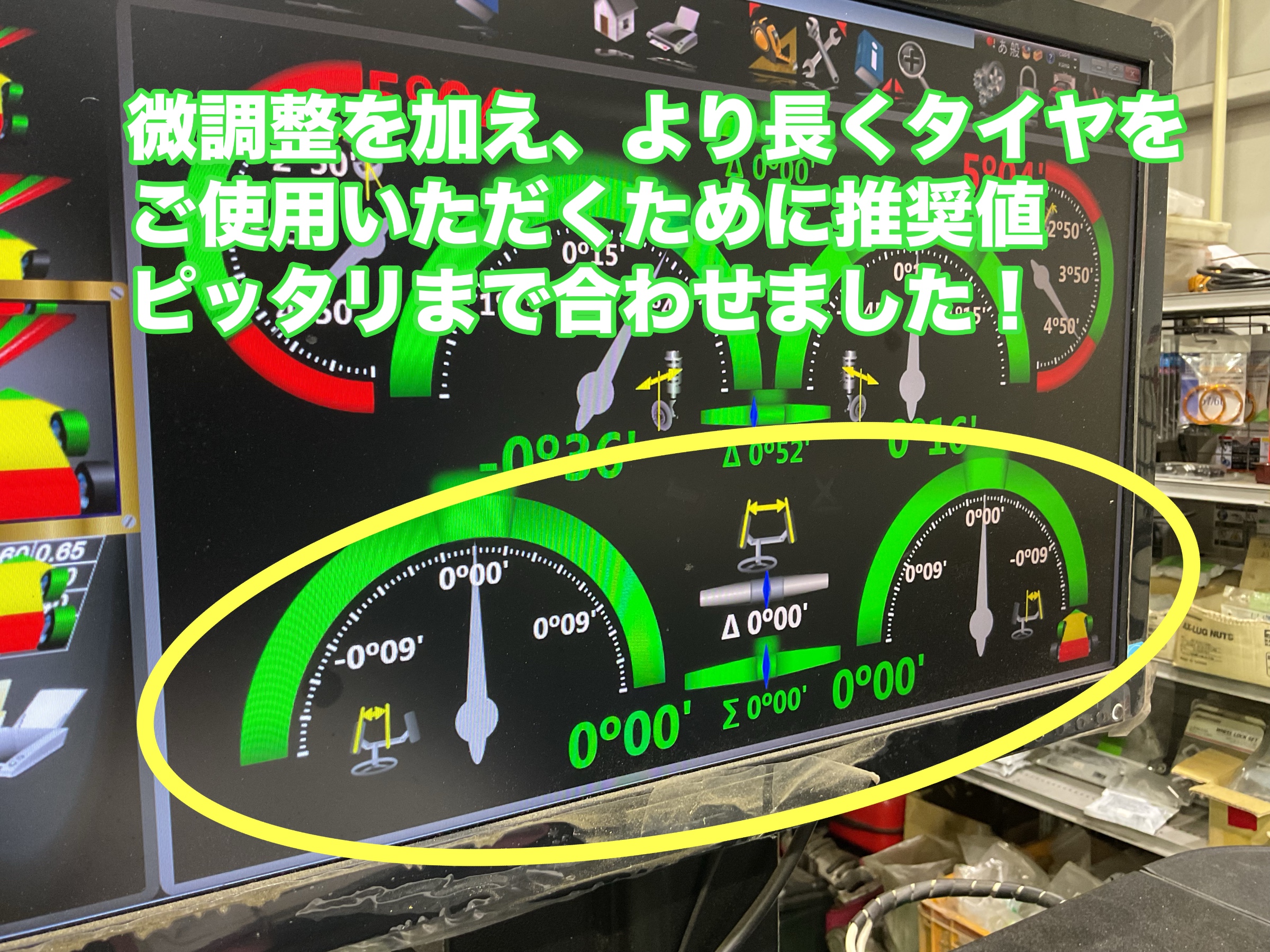 このままではタイヤがもったいない減り方をしてしまうことがあるので、調整していきます。