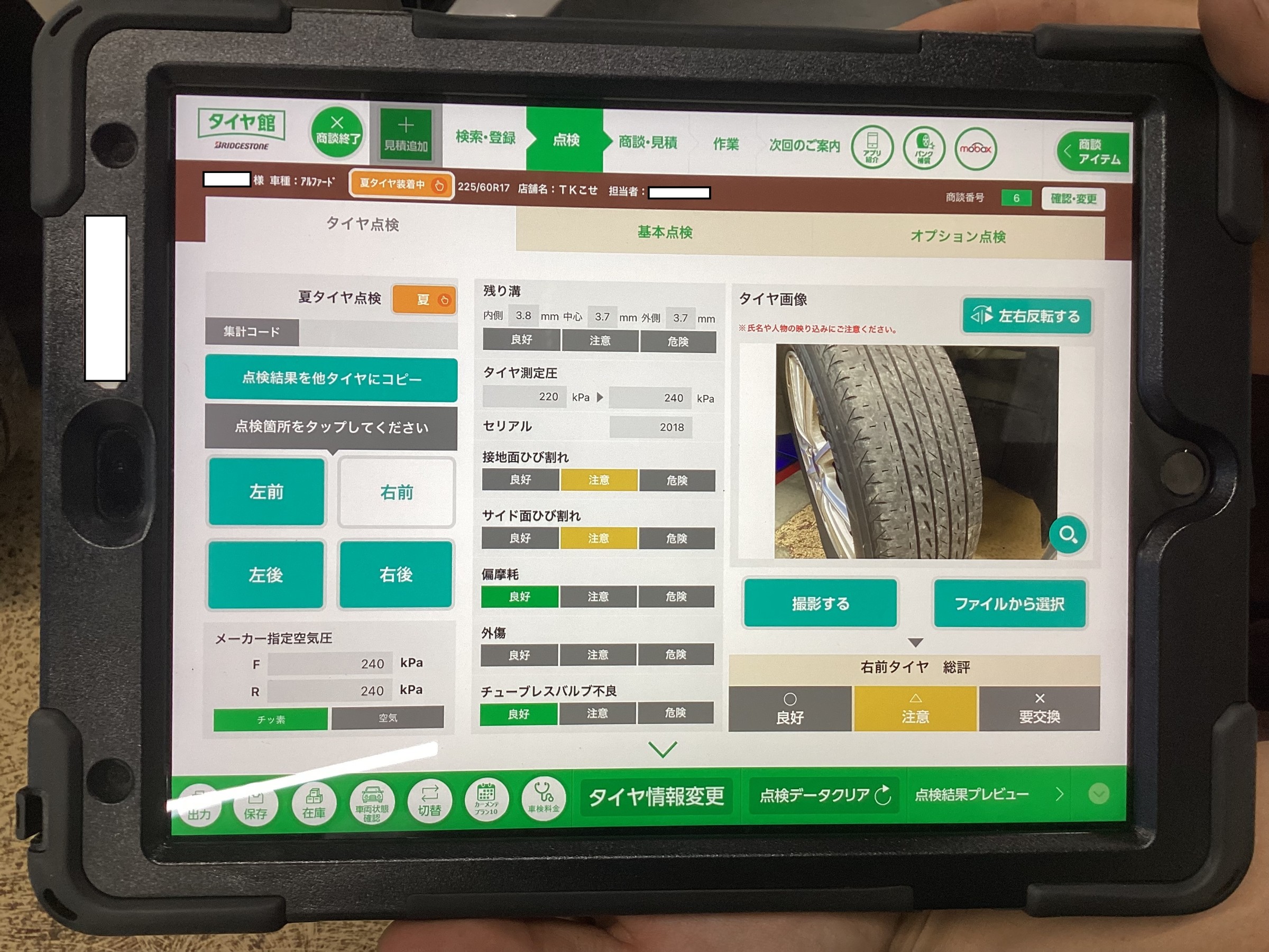 現状の画像と共に、タイヤの状況を店内にて座ったままご確認頂きます。