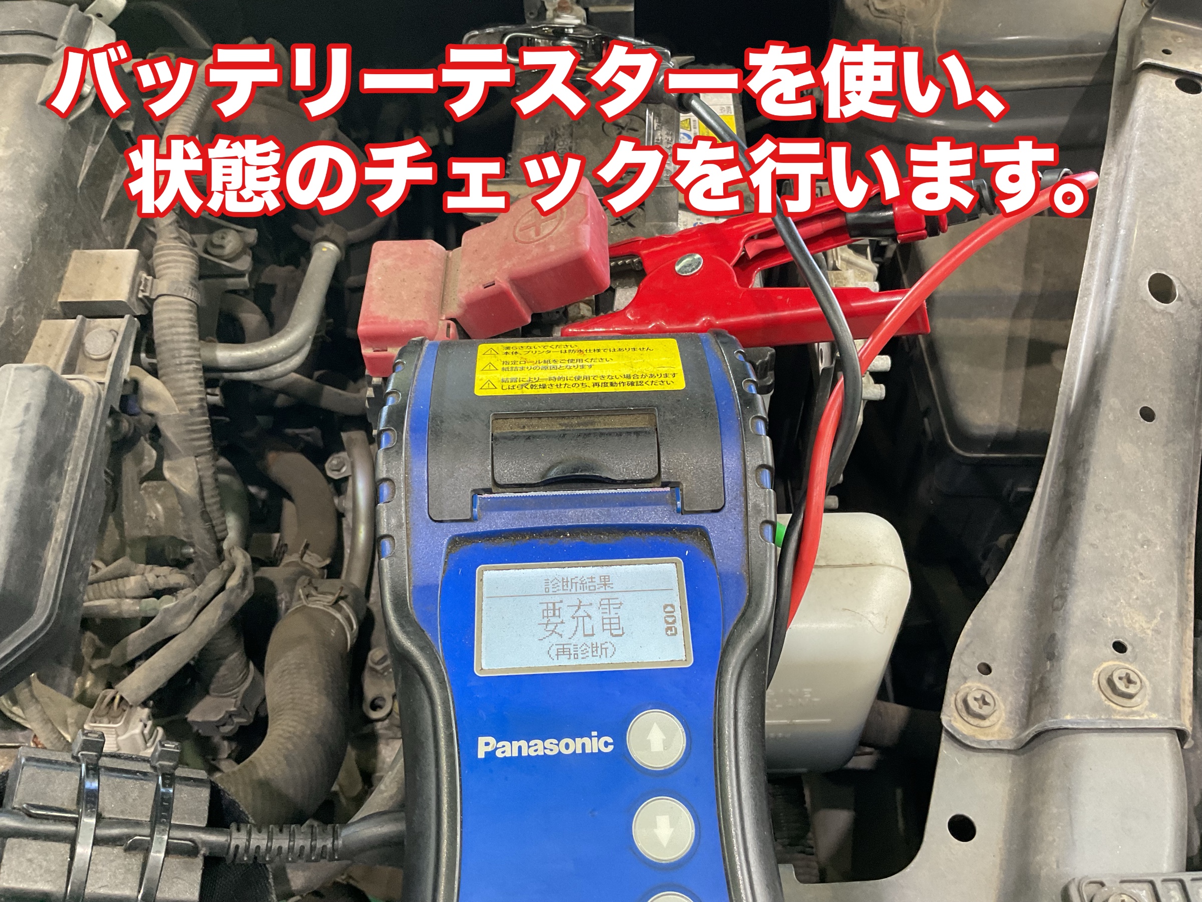 こちらは要充電との診断でしたが、バッテリーの劣化というわけではなく走行距離が少ないことによる電圧低下でした。