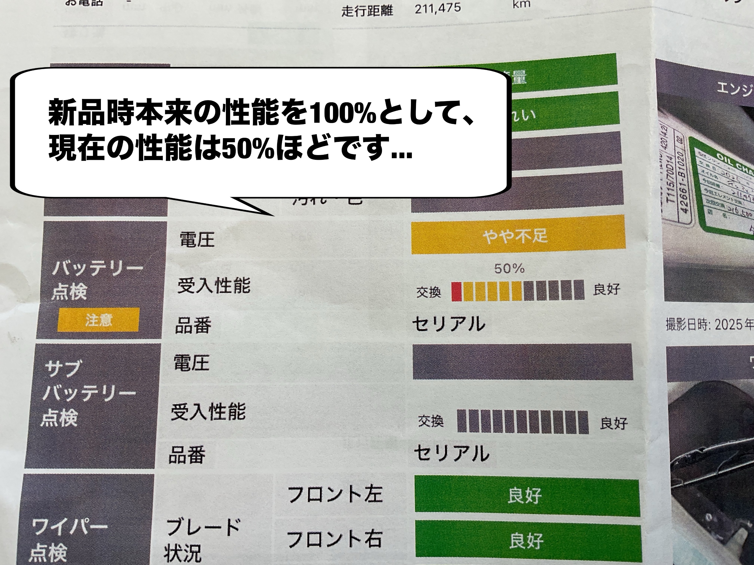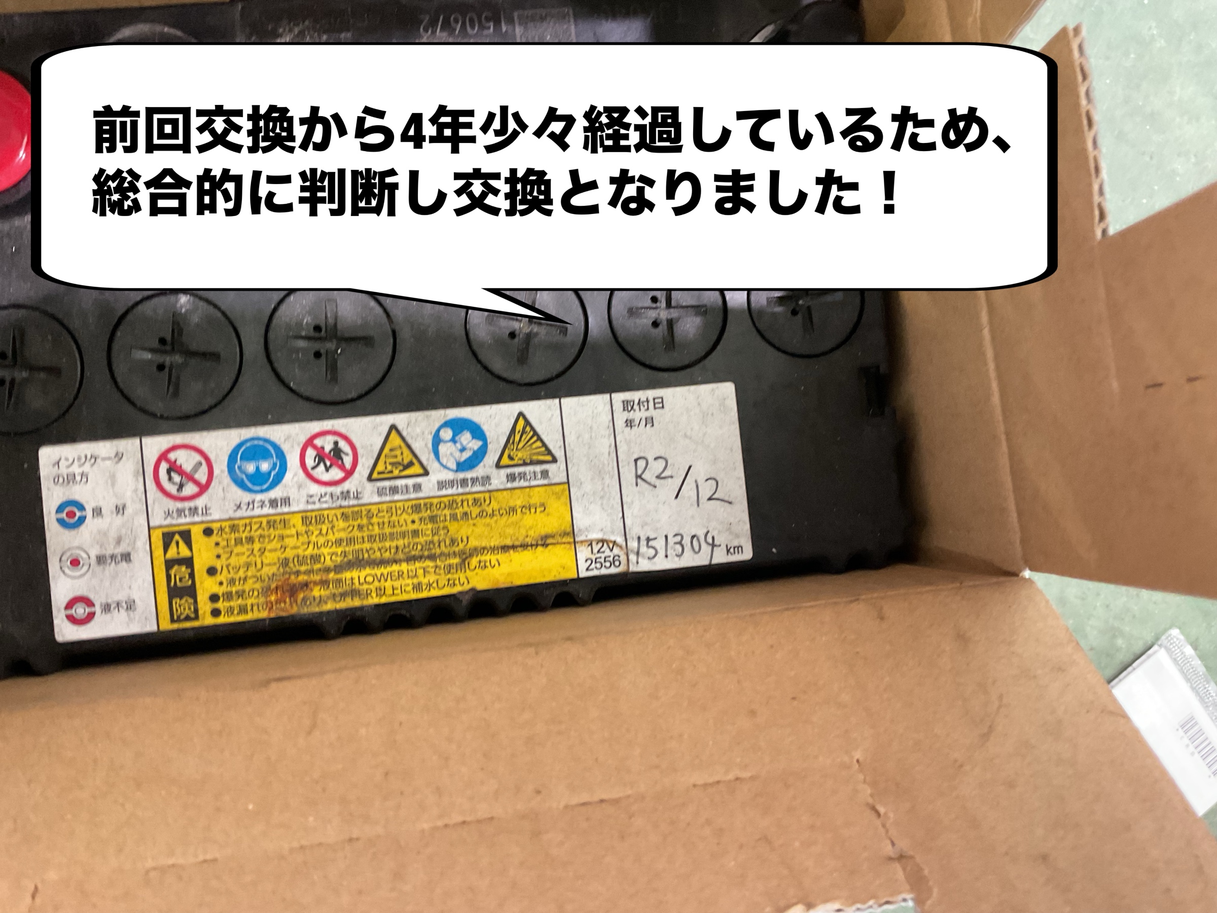 バッテリー点検に限ったお話ではありませんが、テスターの数値だけ見るのではなく、様々な角度から視野を広く点検することがトラブル防止において重要です。