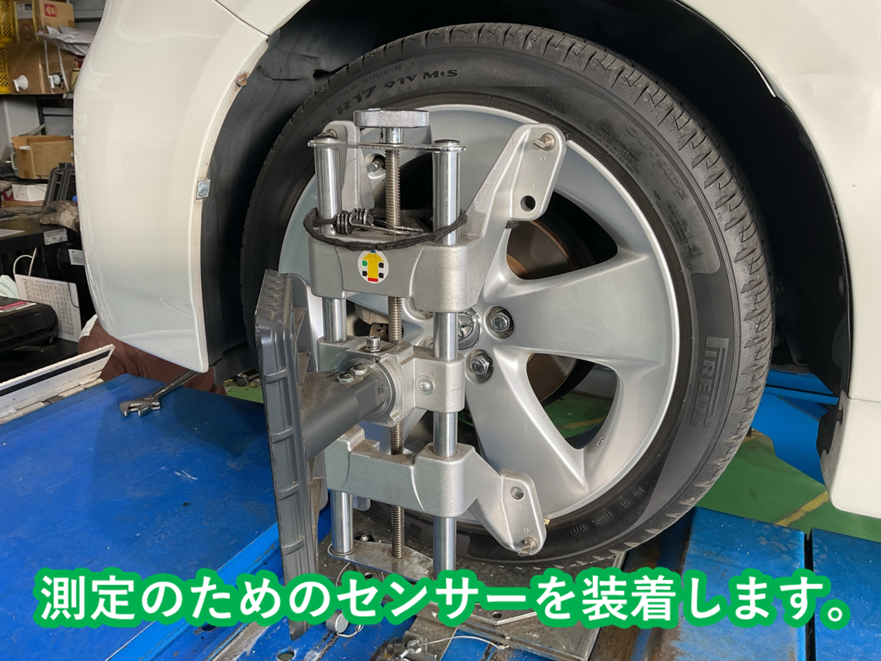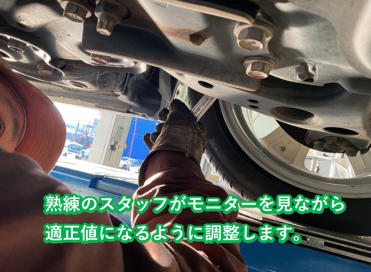 今回はお客様より「ハンドルを少し右に切った状態でないとまっすぐ走らない」とのご相談があり測定しました。