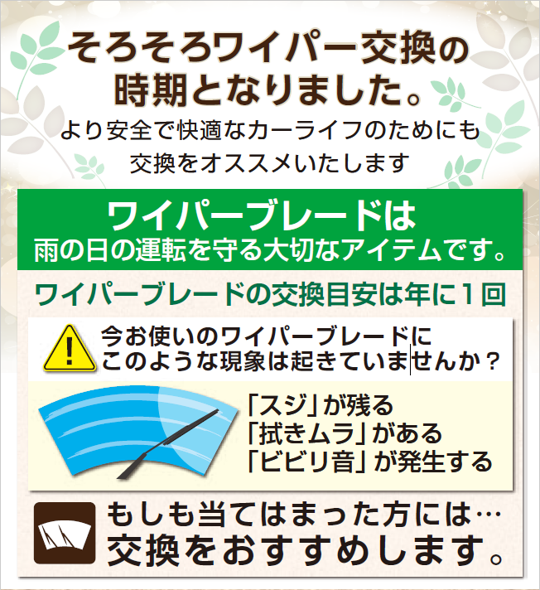 皆様のお車のワイパーの状態はいかがでしょうか?