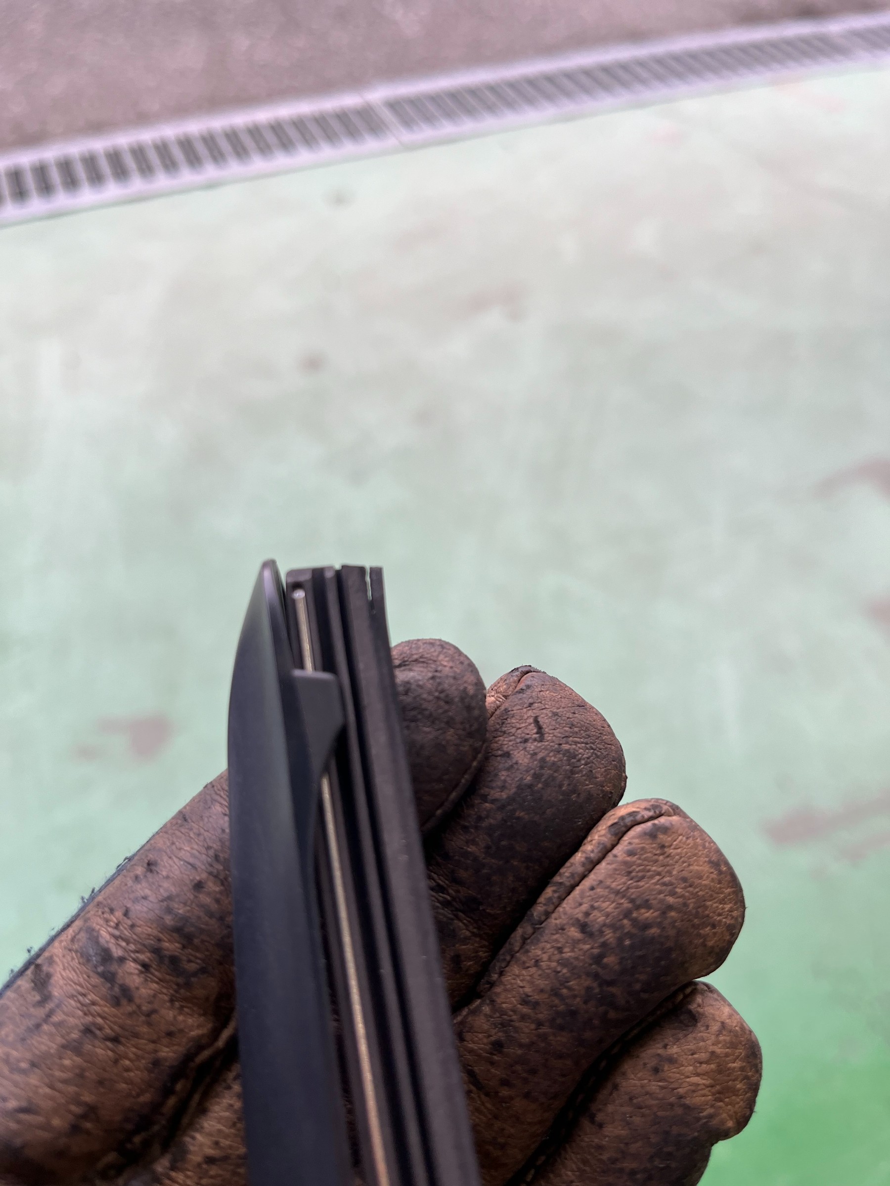 上の画像のように、ひび割れや裂けがあればワイパーゴムの劣化が起きていますので交換が必要となります。