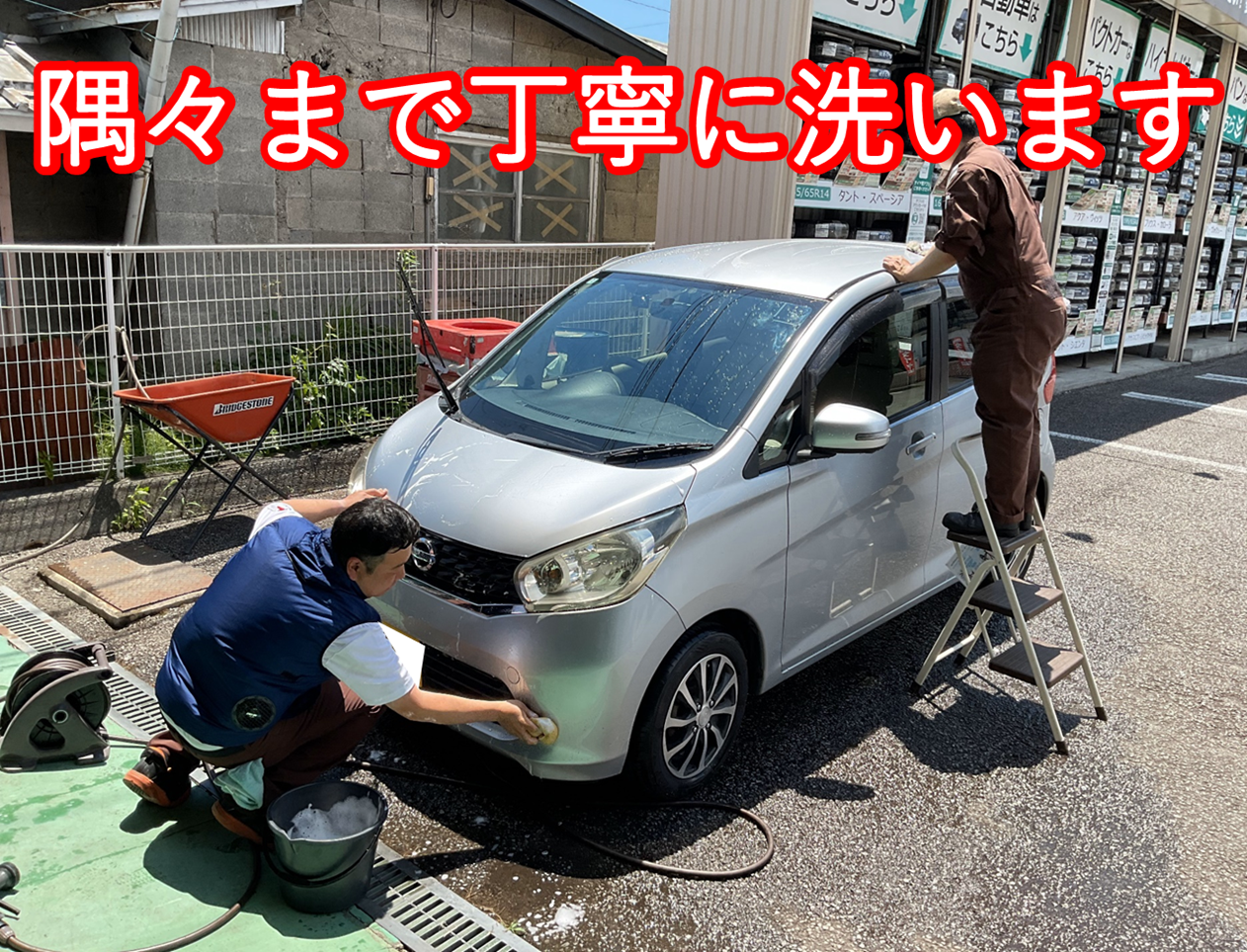 スタッフが真心こめて夏の暑さにも負けずに洗車します!!