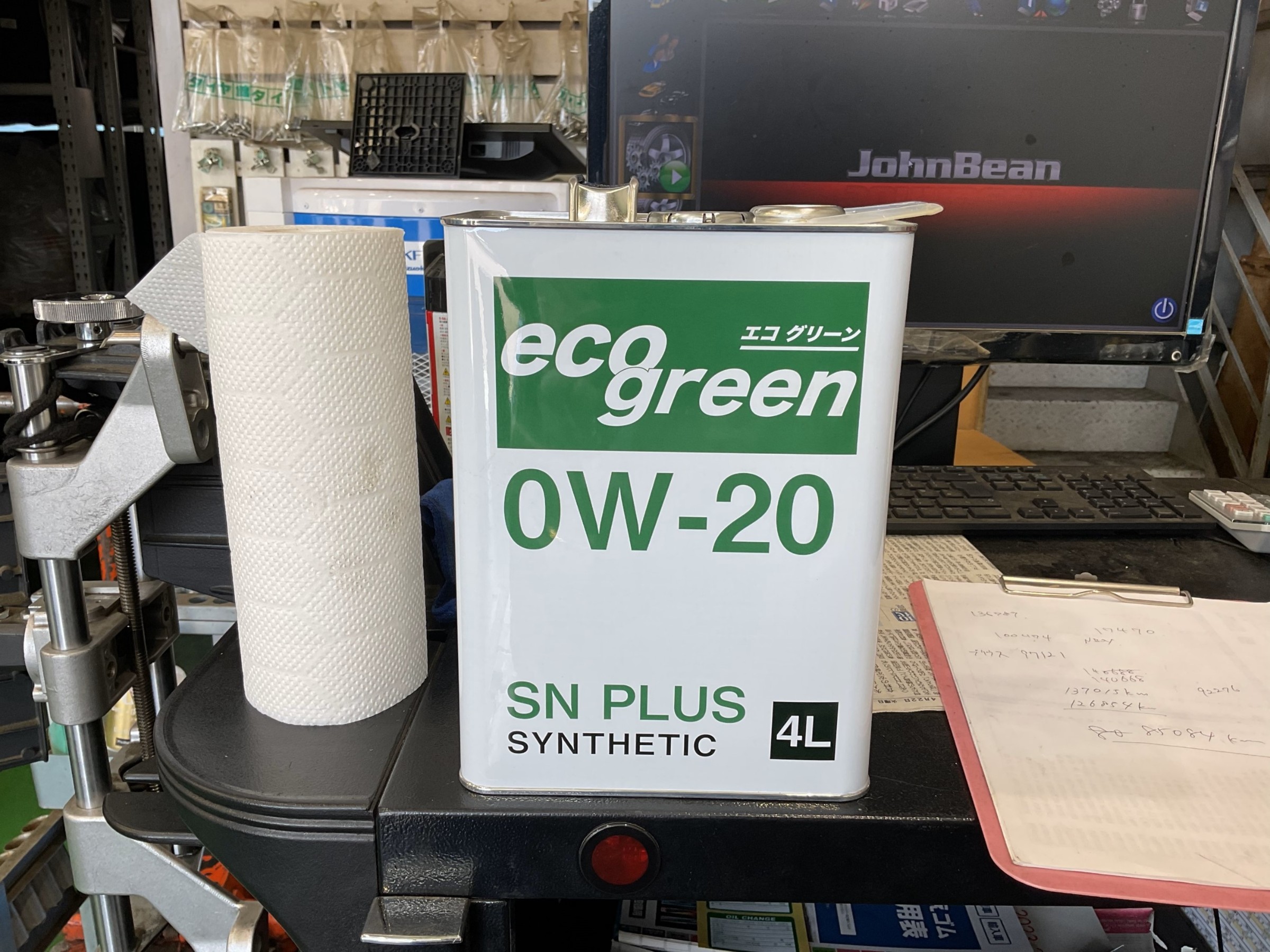 今回は部分合成油の「ECO GREEN0w-20」を使用しました。