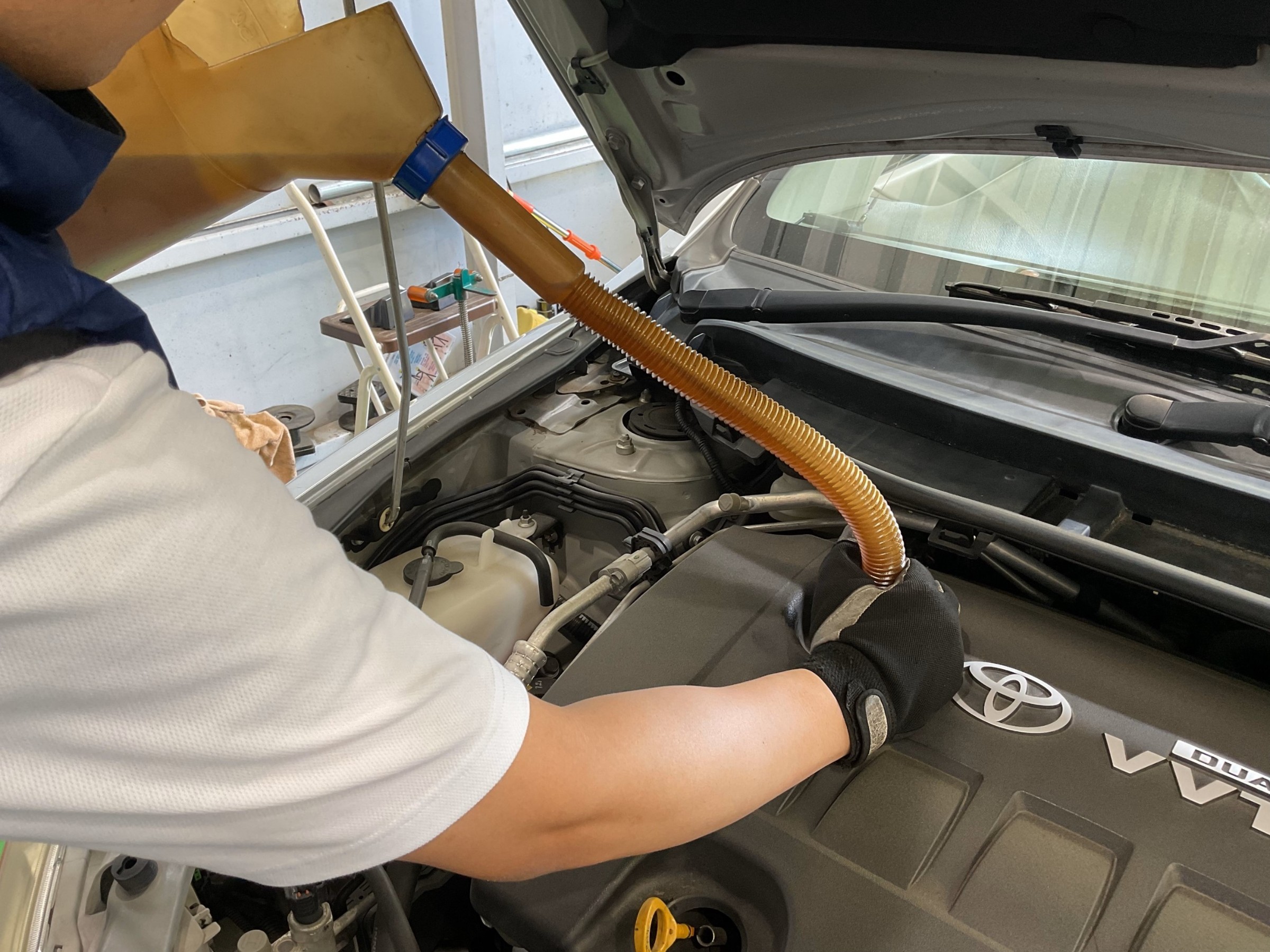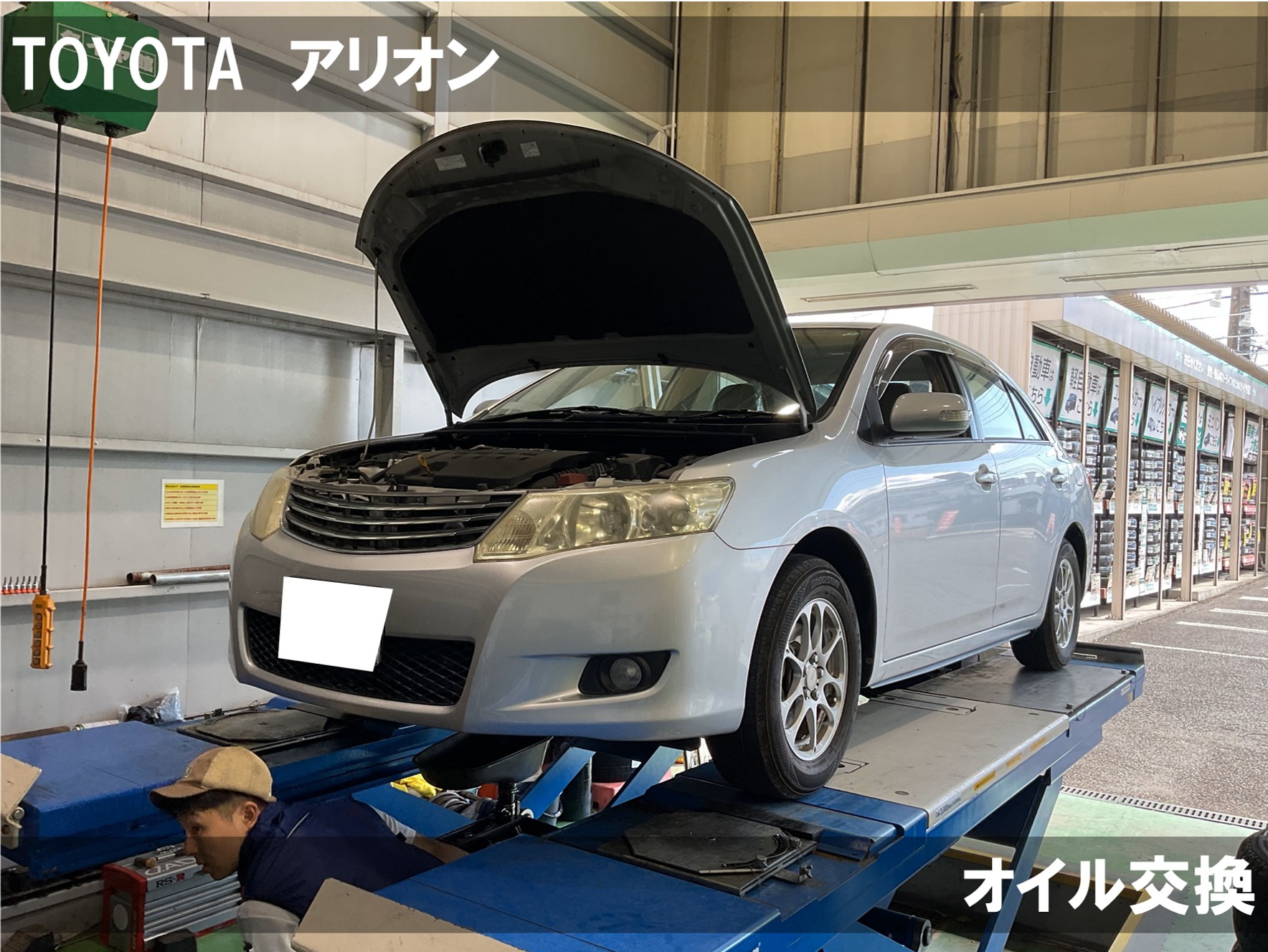 本日は、トヨタ・アリオンのオイル交換をご依頼いただき作業しました。