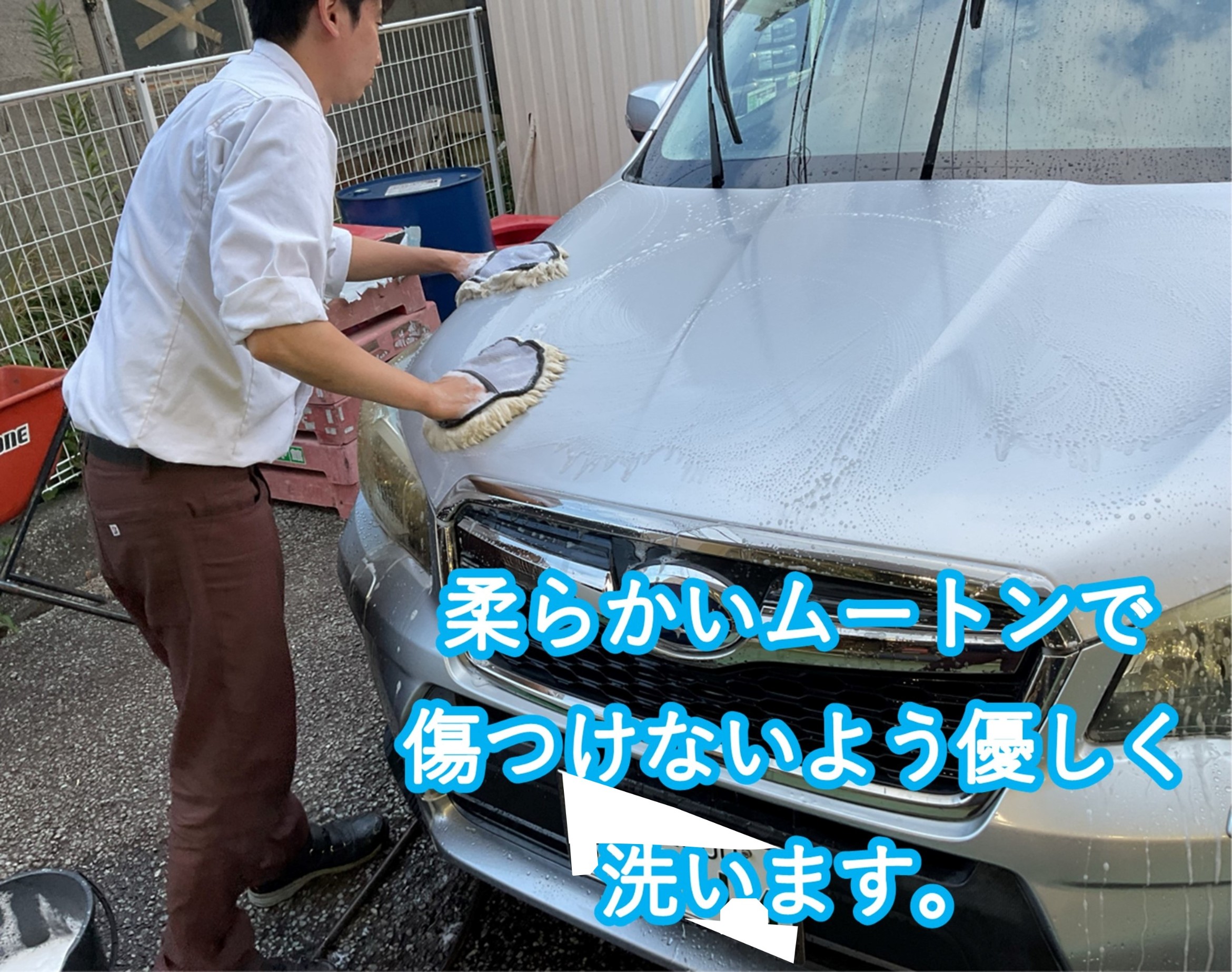 今回はお恥ずかしながら、スタッフの間でほとんど車を洗わないということで有名な(?)スタッフ渡邊の車がデモカーです(笑)