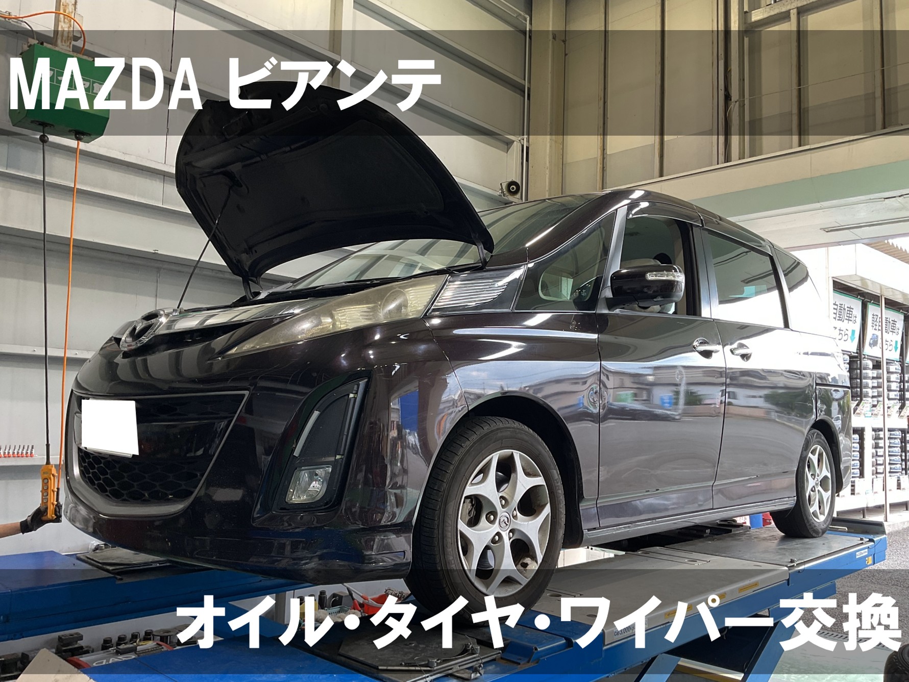 マツダ・ビアンテのオイル・タイヤ・ワイパー交換をさせていただいたのでご紹介します。