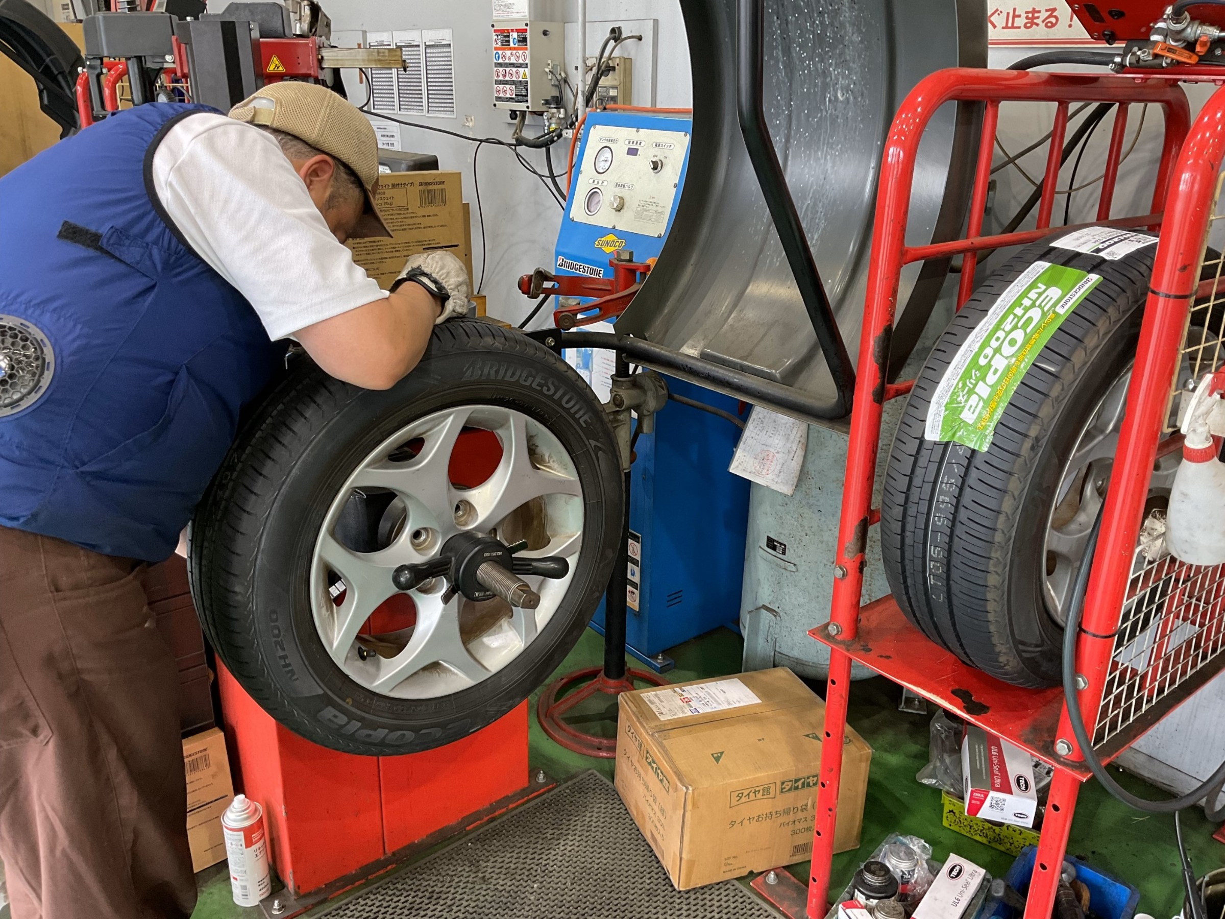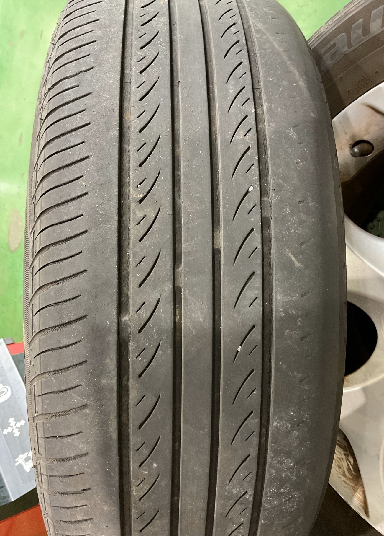 オイル交換の作業中に別スタッフがタイヤ点検したところ、タイヤが摩耗して溝が少なくなっていました。