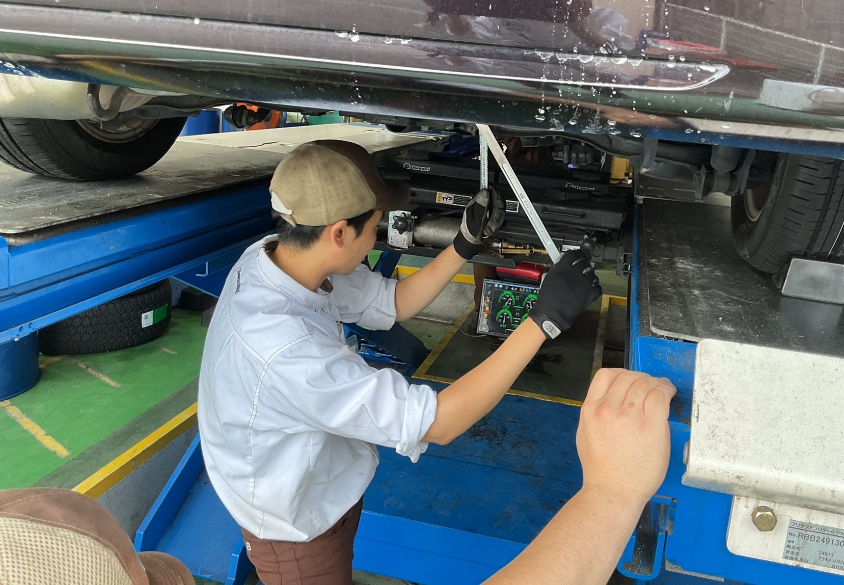 新品タイヤ装着後、アライメント調整をします。