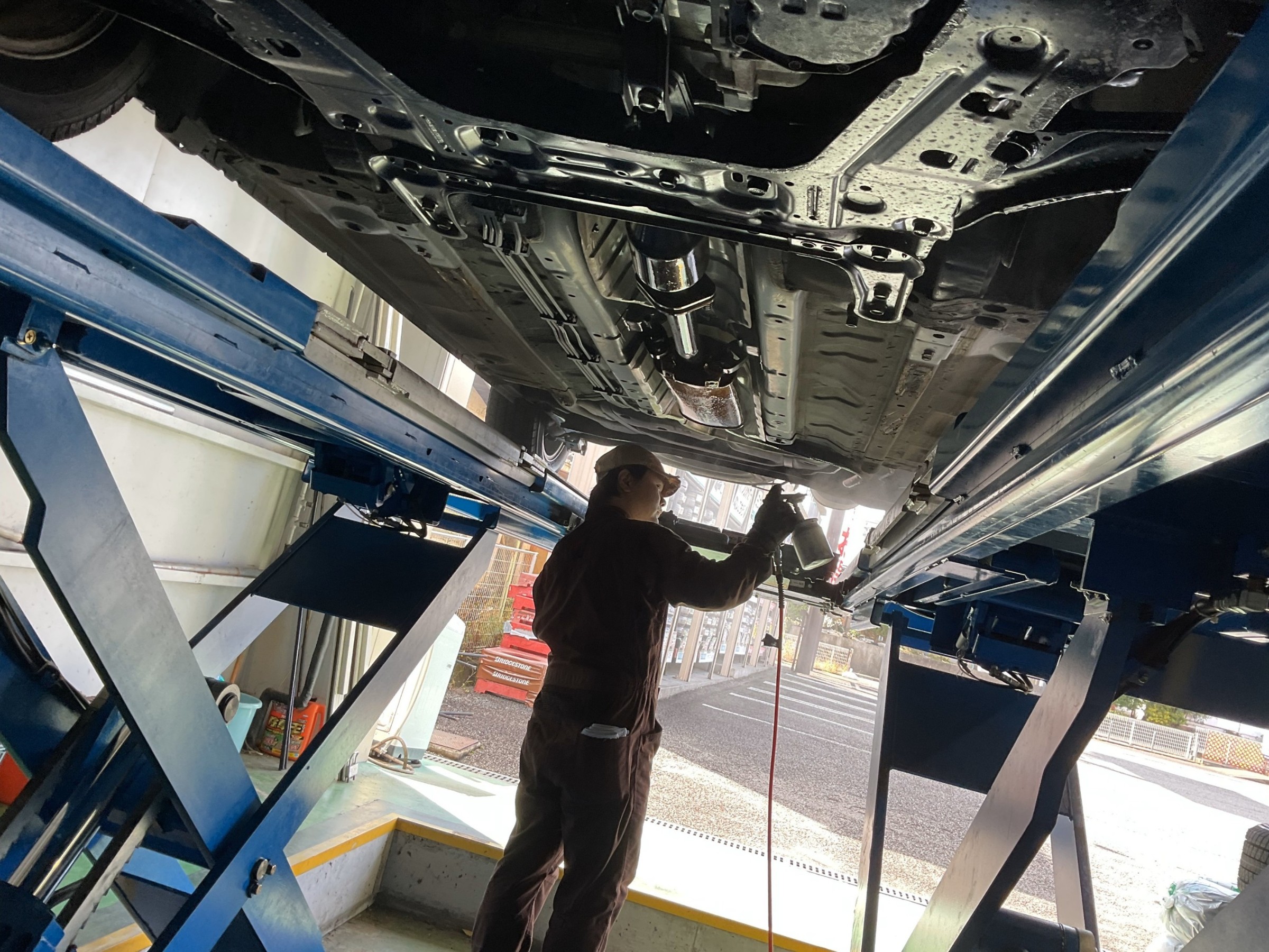 富士吉田周辺では融雪剤が散布されるので必須です!!最後にアライメント調整もして、作業完了です!!