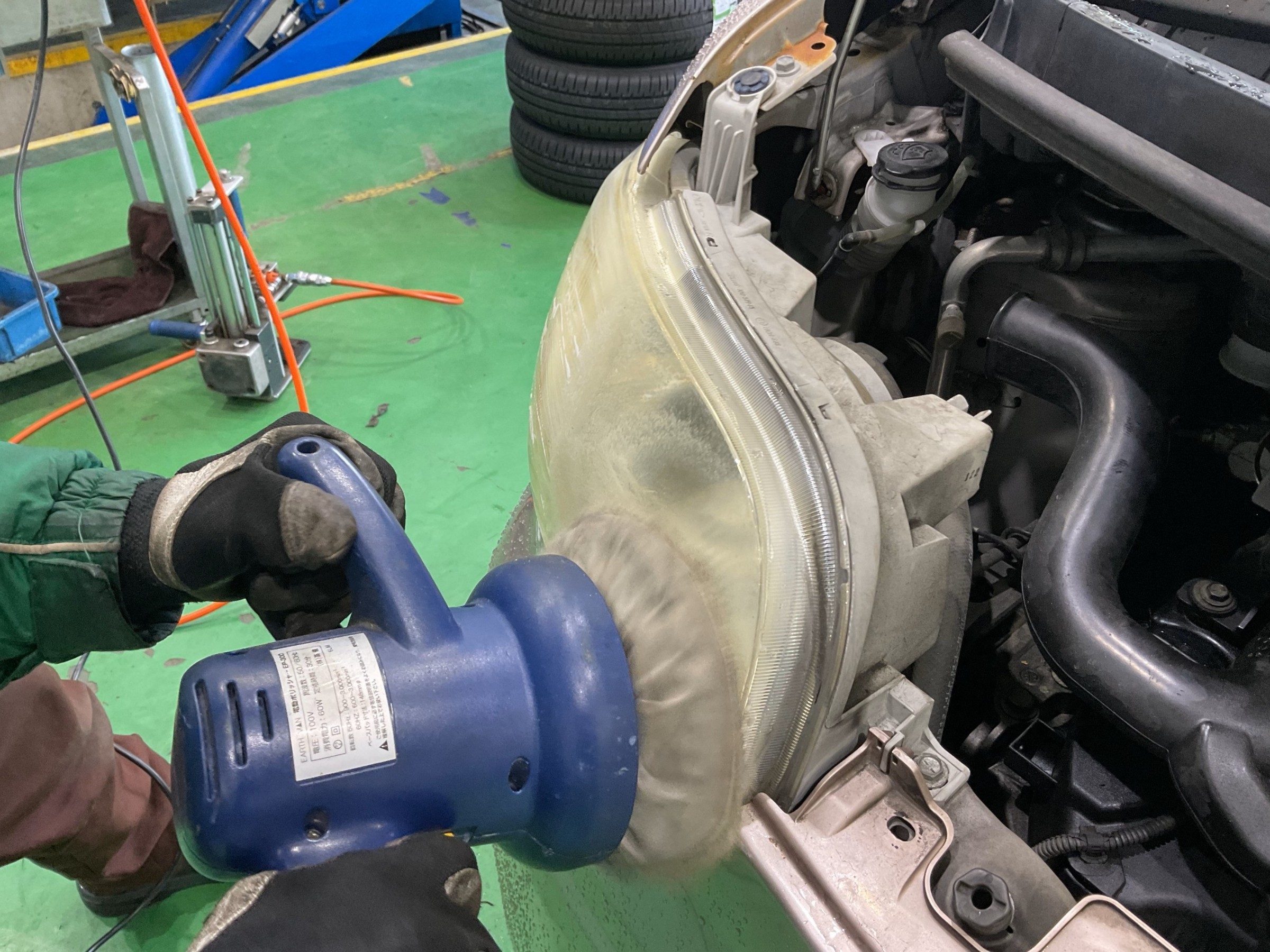 ポリッシャーで磨き、黄ばみやくすみを取り除いていきます。