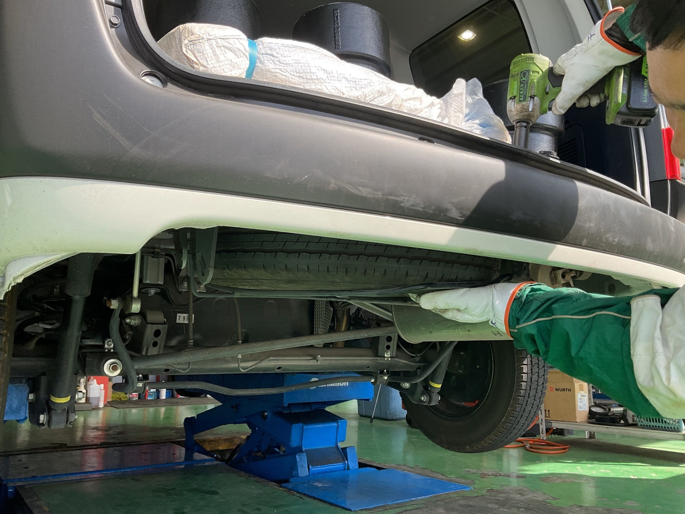 外したスペアタイヤを元に戻します。