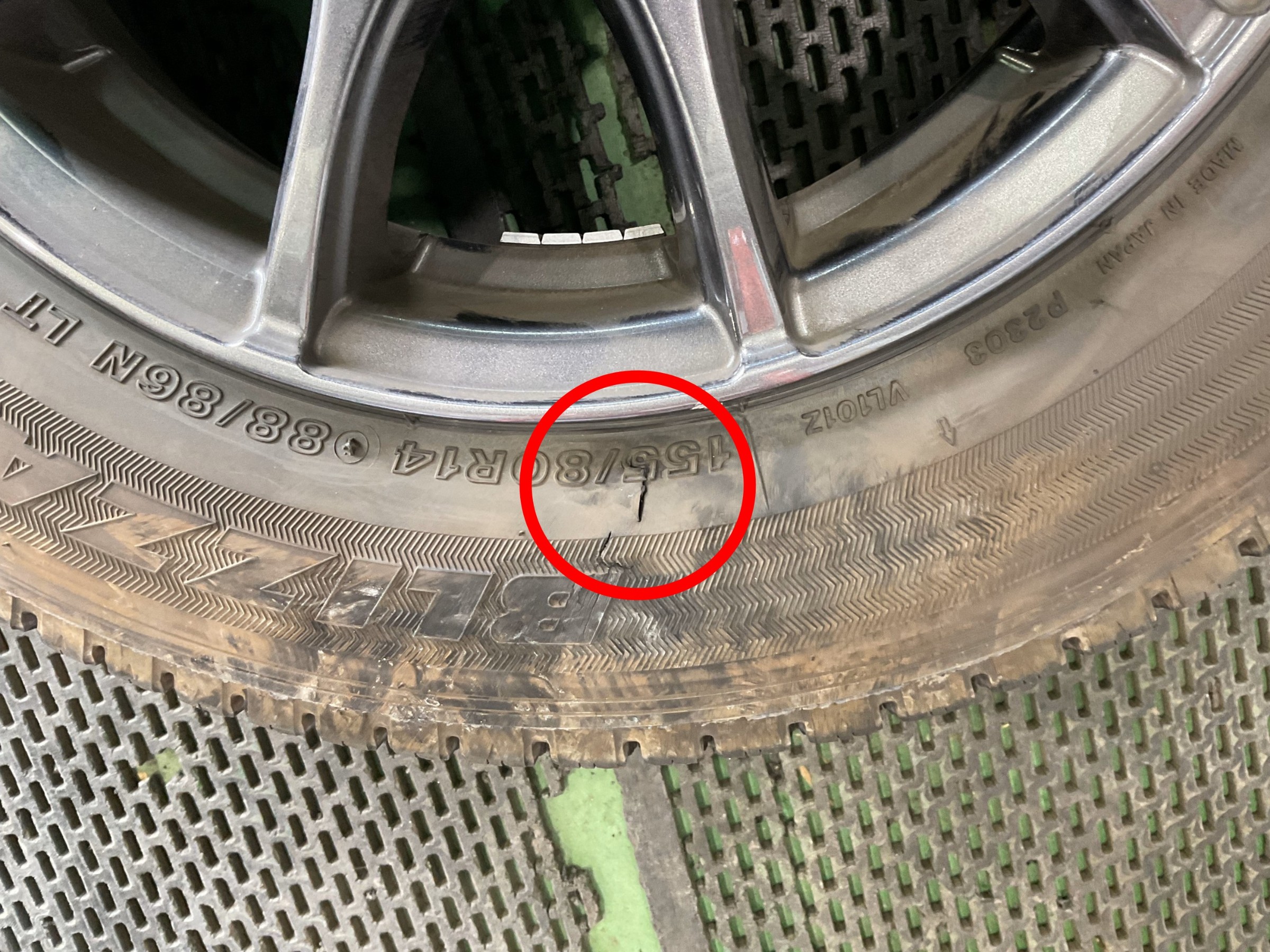 ご自身でスペア脱着をして、パンクのタイヤを持ってきていただいたのですが、