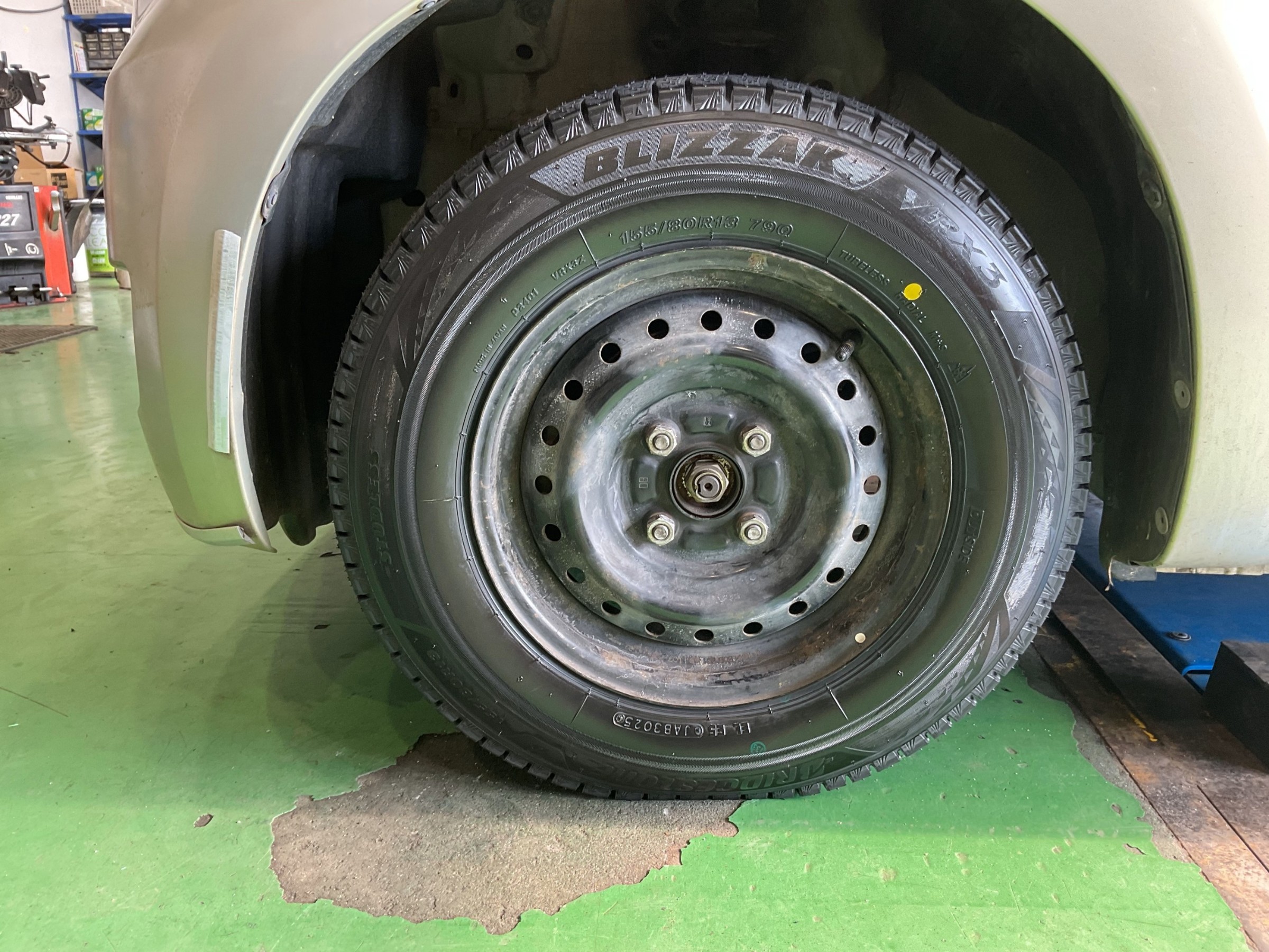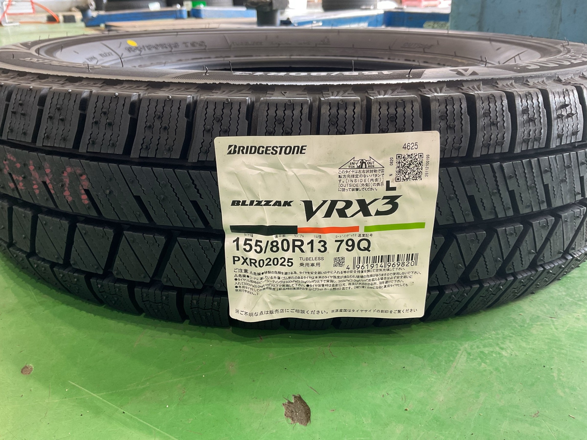 本日中に4本新品に交換したいとのことで、しっかり止まる、曲がる「BLIZZAK VRX3」を装着します!