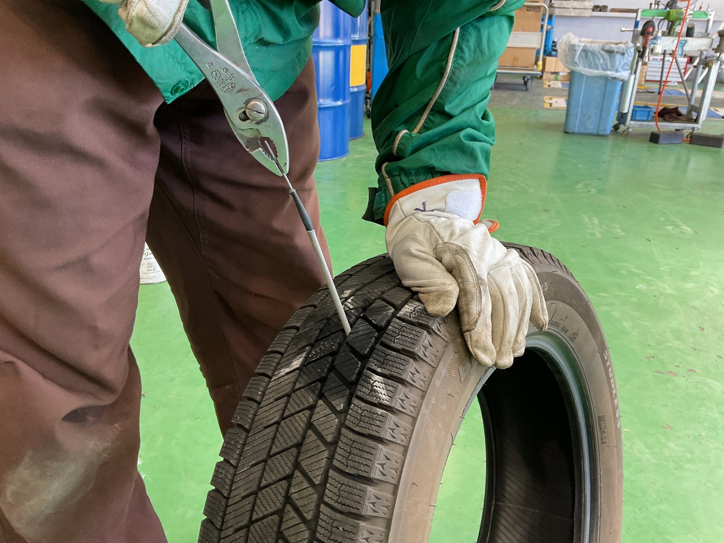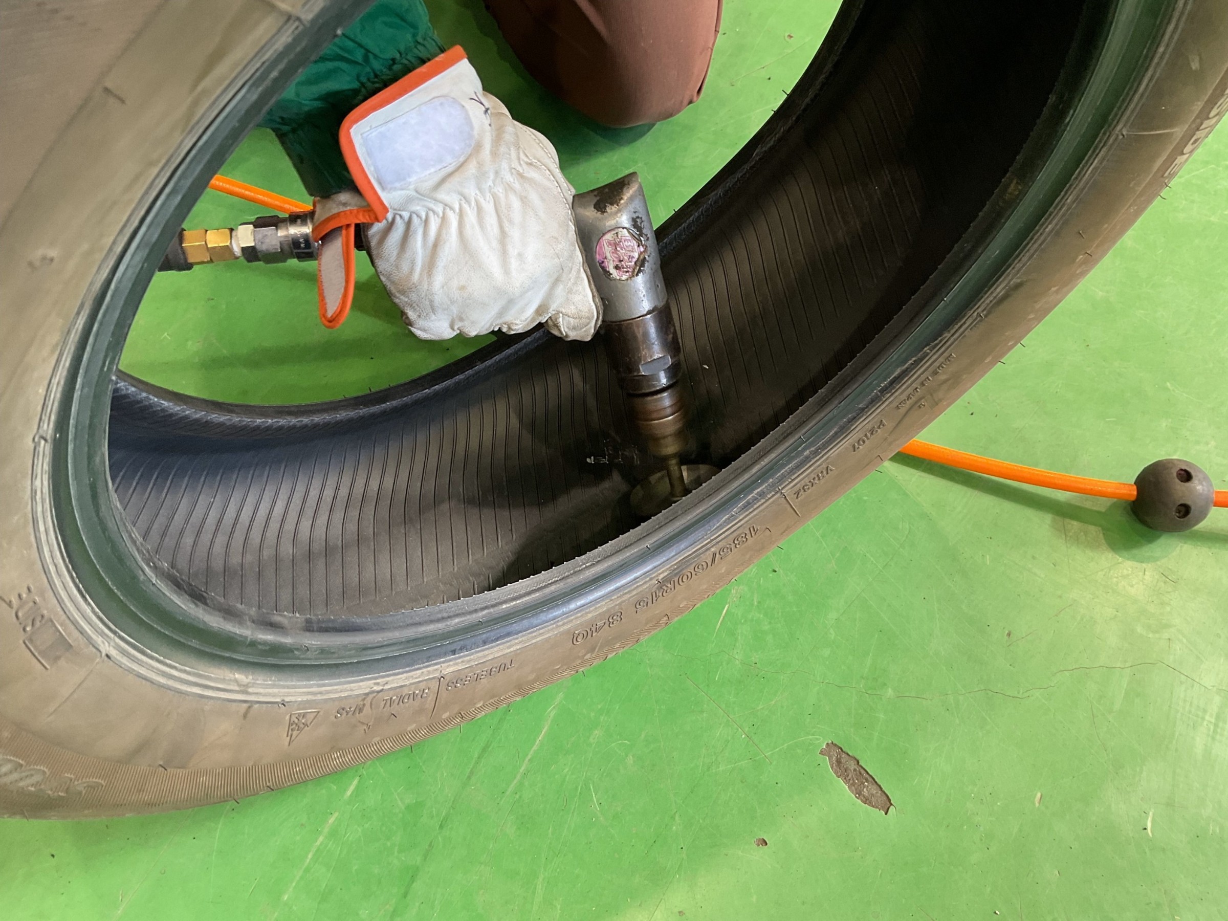 ※ タイヤを外して内側から修理材を打ち貼りして修理する「内面修理」