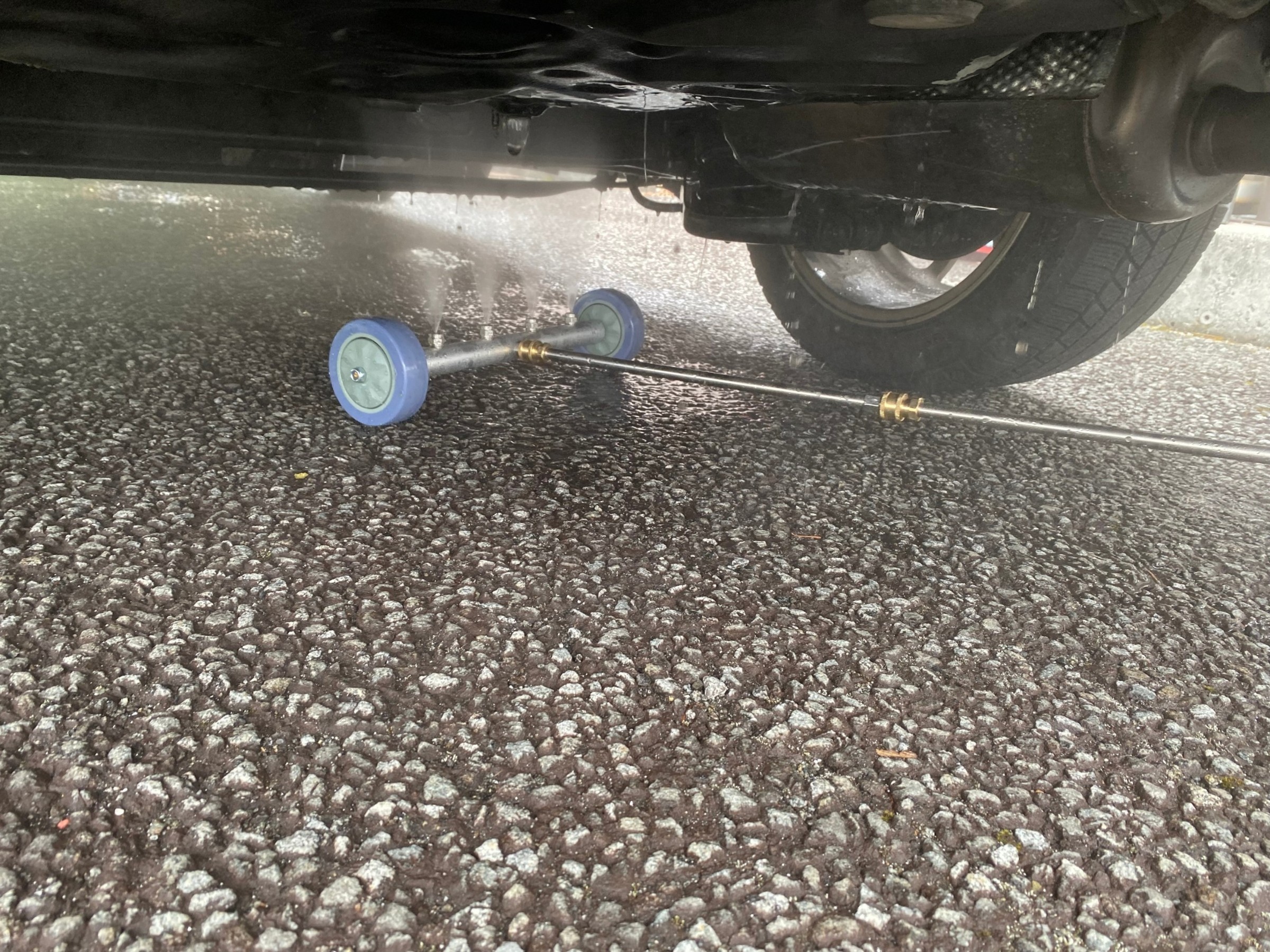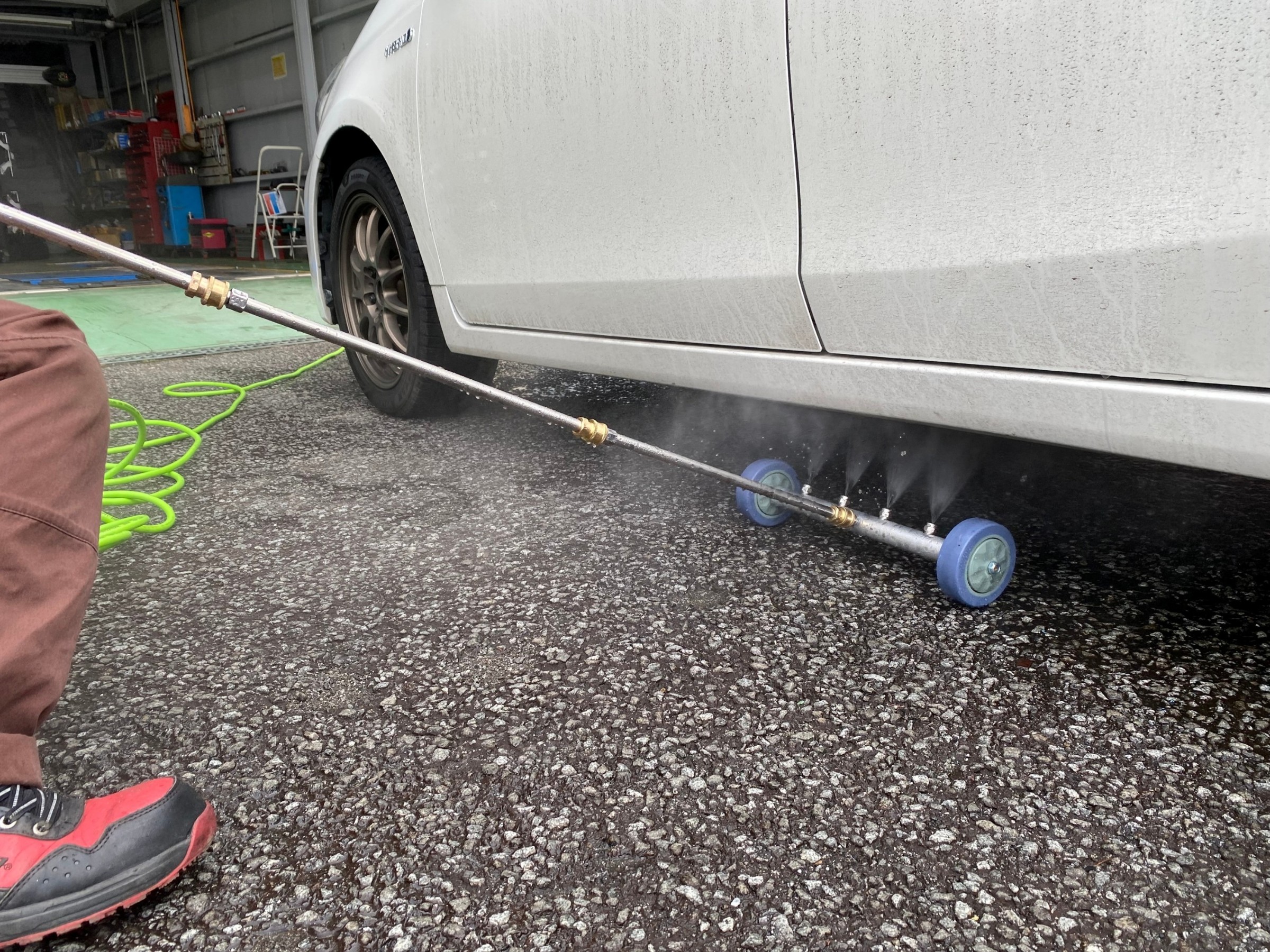 高圧洗浄機と専用のツールでお車の下回りを洗浄いたします!!