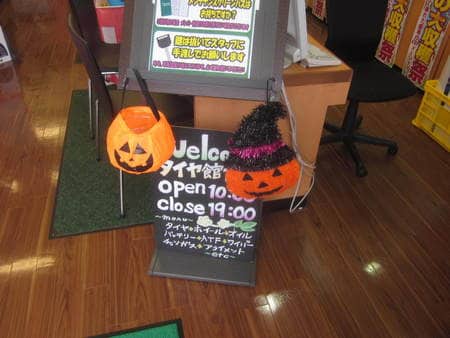 もう秋ですね ポスト 2016年9月16日 こんにちは(*^_^*)タイヤ館吉田です!!!もう秋になりますね~夏が終わり、私は気分があがらないです(^_^;)また台風も近づいてきてますね。寒くなってきてるので体調崩さないようにお気お付けください!!吉田店では店内をハロウィン使用にしてみましたよ♪かぼちゃいっぱいです(笑)かわいいです♪無料で安全点検も実施しているのでお気軽にお立ち寄りください\(^o^)/