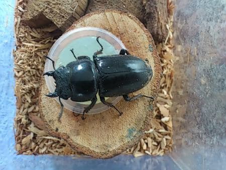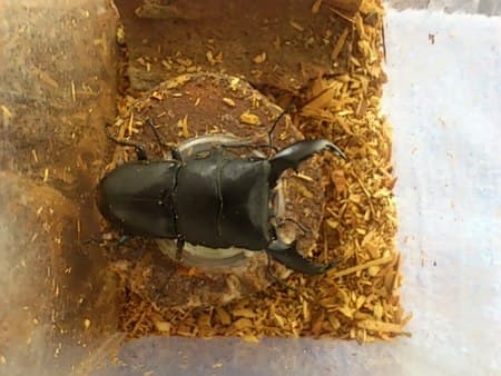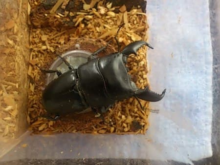 スマトラヒラタ ポスト 2016年10月17日 スマトラ島に生息している、大型のヒラタクワガタです!!外来種の為、購入しないと入手できませんが、近所のスーパーで何故か?500円で売っていたので、思わず購入してしまいました\(^o^)/オスは60~70mmですが、大きい個体だと100mmオーバーにも成長します!!もう、ガラケーとほとんど変わらない大きさですヨ!!オスは威嚇が凄くて、挟まれたらタマリマセン・・・でも、無骨でカッコイイですけどね~!(^^)! 担当:谷口