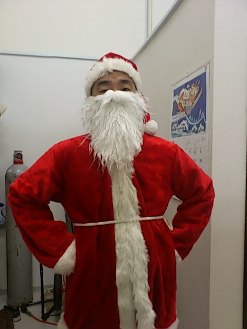 世間はクリスマスムード一色という事もあり、サンタクロースに変身して、お子様にお菓子のプレゼント