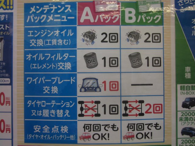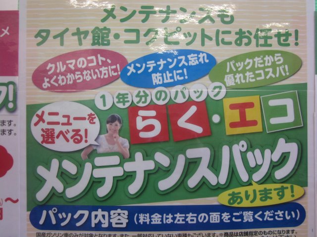 ★メンテナンスパック★ ポスト 2017年2月25日 こんにちは~(^_-)-☆タイヤ館です!!!店内にメンテナンスコーナー設置しました(^O^)/女性のお客様にもわかりやすい展示です(*^_^*)ご来店の際には是非とも拝見してください(^_-)-☆ 担当:小林