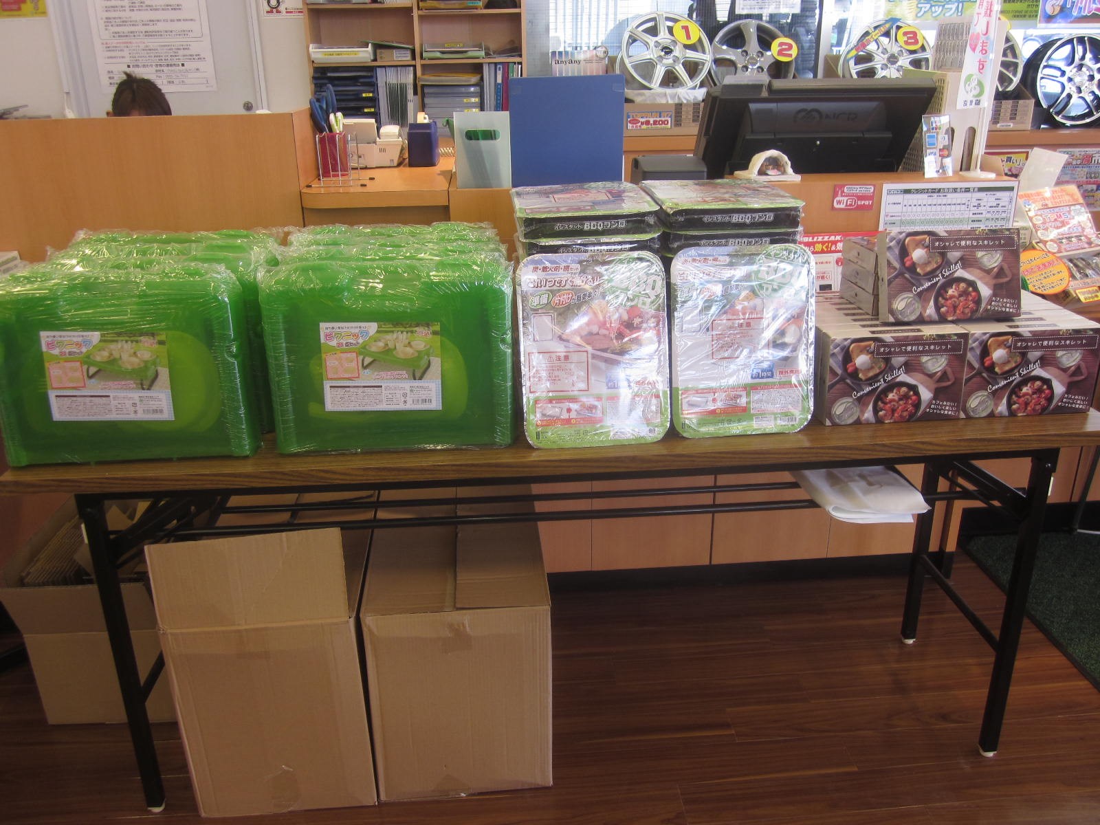 ところで今日から、「集中得市」始まりました~\(゜ロ\)(/ロ゜)/今回はタイヤ4本お買い上げのお客様に、お出かけが楽しくなる3点セットをプレゼントいたしますよ~!!