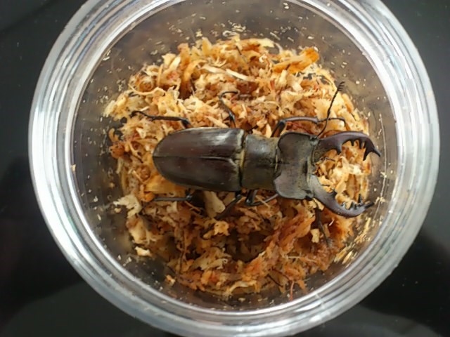 ミヤマクワガタ ポスト 2017年6月25日 先日、今年初めて山梨でのミヤマクワガタ採集ができました!! オスの体長68mmと、まずまずの大きさですね!!目標は70mmオーバー!! メスも大きく40mmです!! たくさんタマゴを生んでもらいたいですね~♪ 担当:谷口