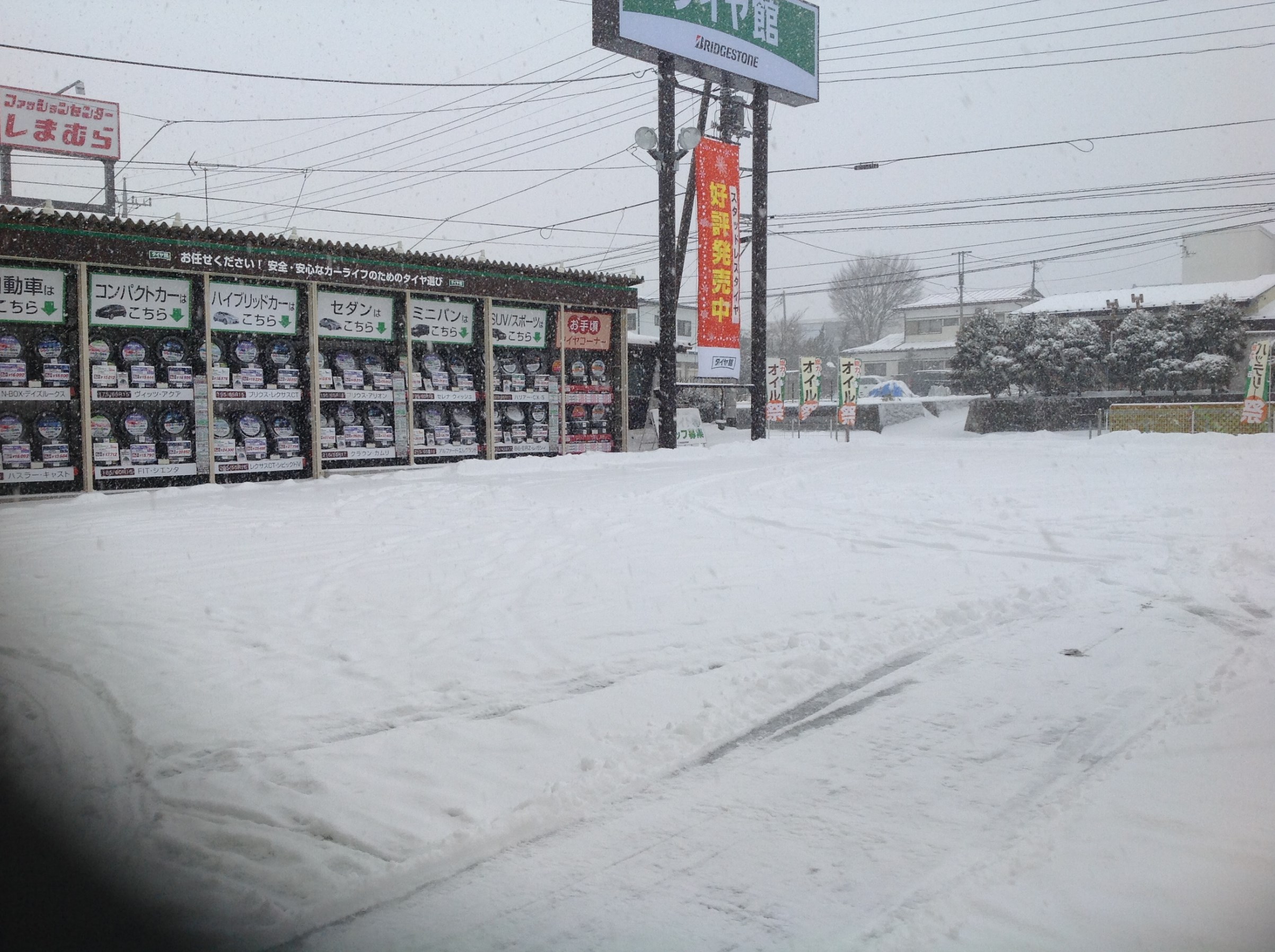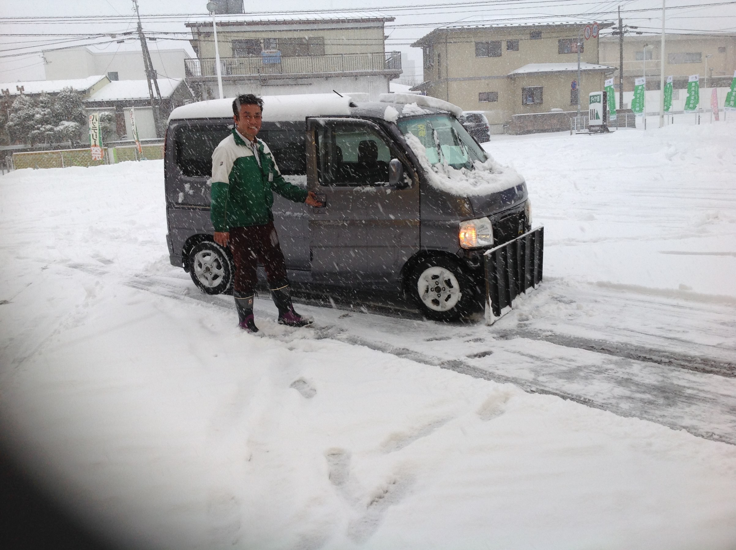 予報的中!!! ポスト 2018年1月22日 本日は太平洋側で大雪の予報でしたが、見事に的中しましたね!!! お昼頃から降雪の予報でしたが午前中から降り始め、現在もかなり降っている状況です! もうすでに20cm位は積もっているのではないでしょうか? 当店は駐車場が広いので雪かきが結構大変です(+o+) 足腰にかなりきます(^_^;) そこで店長が即席の除雪機を作り、駐車場の雪を頑張ってかいてくれています! 即席ですが、大活躍です!!! 担当:田原