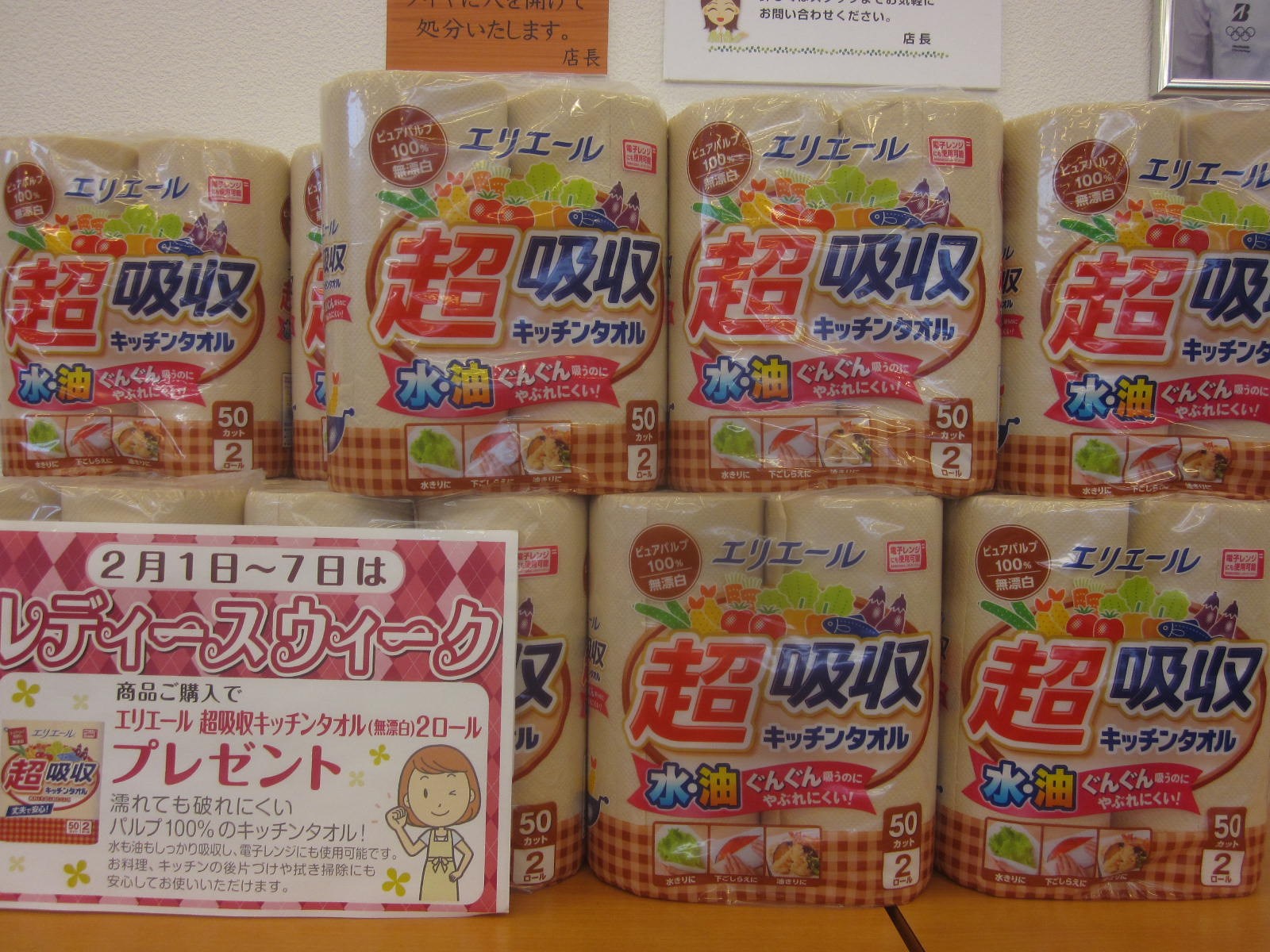 レディースウィーク まだ間に合います☆ ポスト 2018年2月5日 毎月 1日~7日まで女性様限定でレディースウィークやってます! 今月のプレゼントは、キッチンタオルです(*^_^*) 使い勝手抜群ですね! ご来店していただくだけで、大丈夫です☆ 無料でお車の点検、空気圧チェックもさせて頂きますよ。 この機会にタイヤ館まで是非ご来店ください!!