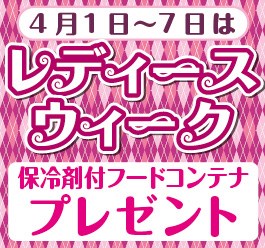 レディースウィーク開催 ポスト 2018年4月1日 毎月1日~7日まで女性のお客様限定 レディースウィーク開催☆ 今月は『保冷剤付フードコンテナ』プレゼント(^○^) ご来店して頂くだけで、OKです!! お気軽にお立ち寄りください。