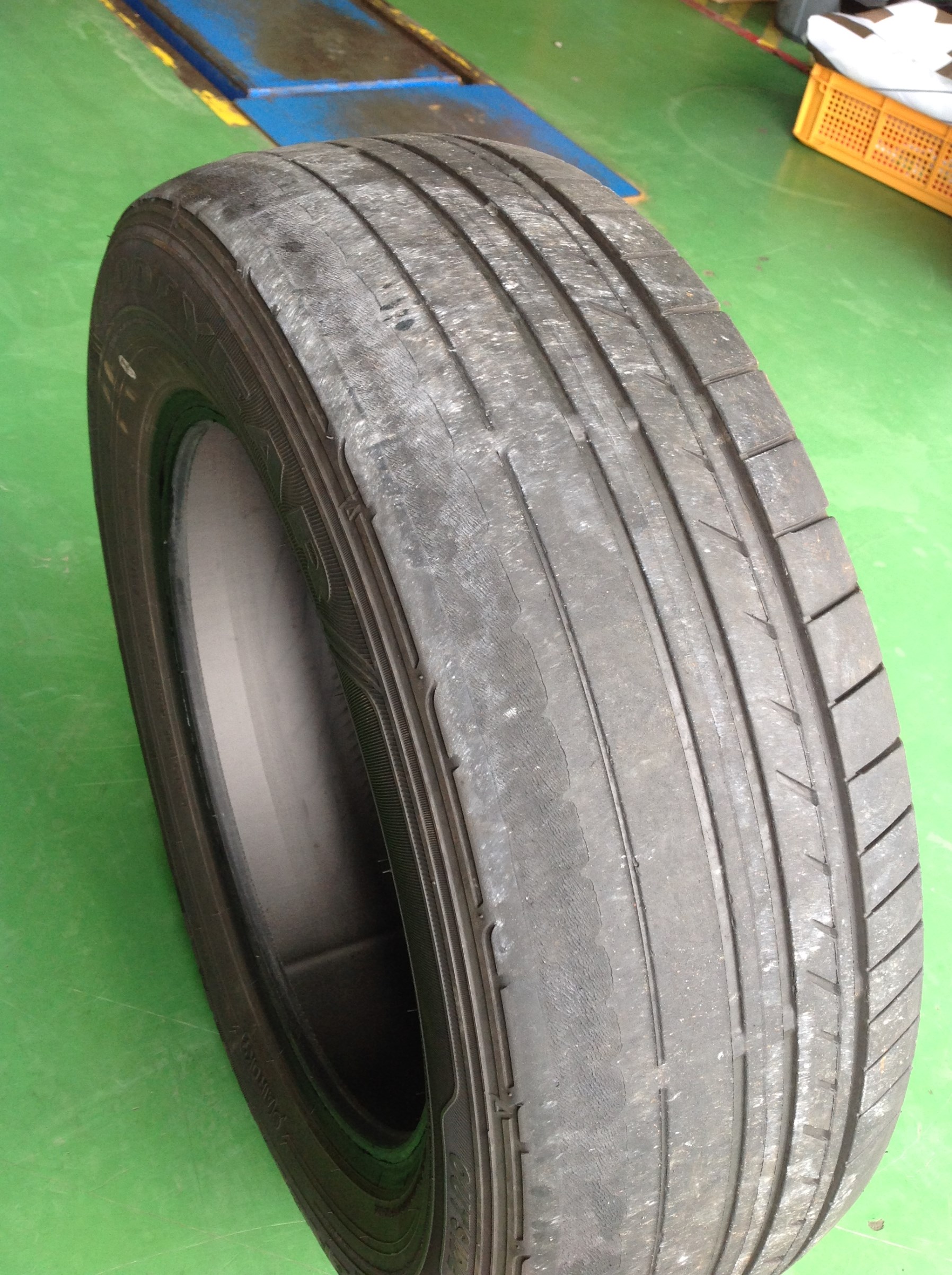 タイヤの変化に注意!! ポスト 2018年6月21日 こんにちは。タイヤ館 吉田店です 本日、日産 TEANA フロント左右 タイヤ2本新品に! アライメント作業をさせて頂きました。 お客様にお聞きしたところ 半年前に車検をとり、しかも 新品タイヤ4本に履き替えて下の写真の状態のタイヤに・・・ また、走行中はタイヤが右側に流れる状態。 ハンドルは、左に取られる状態だそうです。 フロント(左)↓ フロント(右)↓ リア(右)↓ 全く問題なし