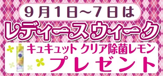 【レディースウィーク開催予告!!】 ポスト 2018年8月27日 【レディースウィーク開催予告!!】 ちょっと早いですが、9月のレディースウィークの開催告知! 来月のレディースウィークはこちら! キュキュット クリア除菌レモン. まだまだ残暑が続き汗がベタつきますが 食器はさっぱりキレイにいきましょう! ご来店お待ちしております!