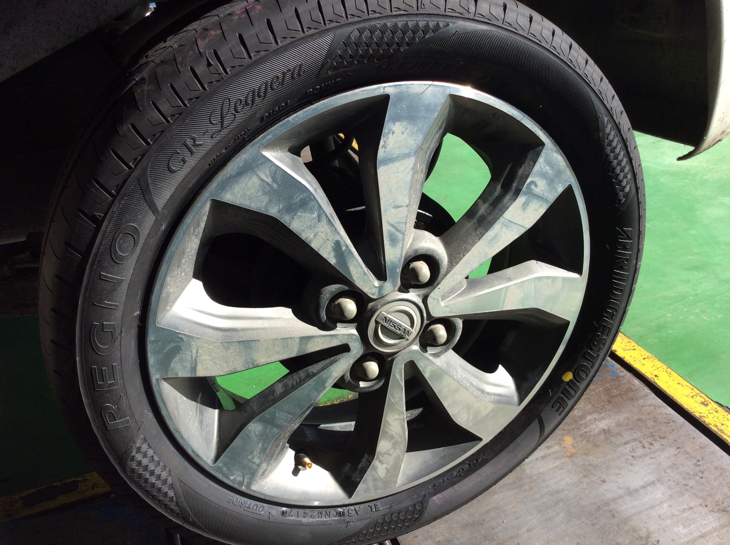 ↓ 装着したタイヤは165/55R15のレグノのGRレジェーラ! センターフィットでしっかり取付します。