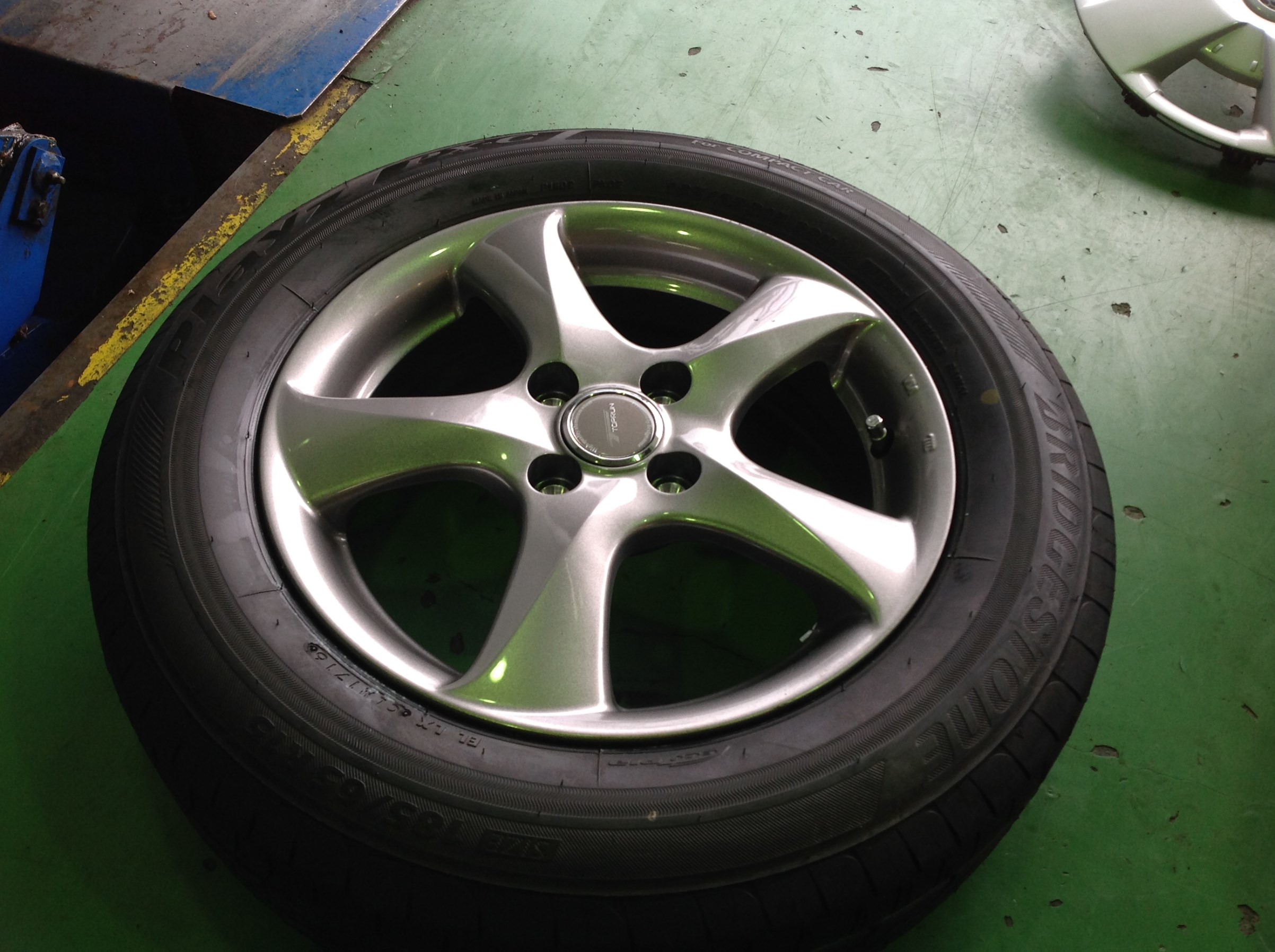 ↓ スチールホイールが曲がってしまった為、新たにアルミホイールを装着。タイヤはプレイズを装着。