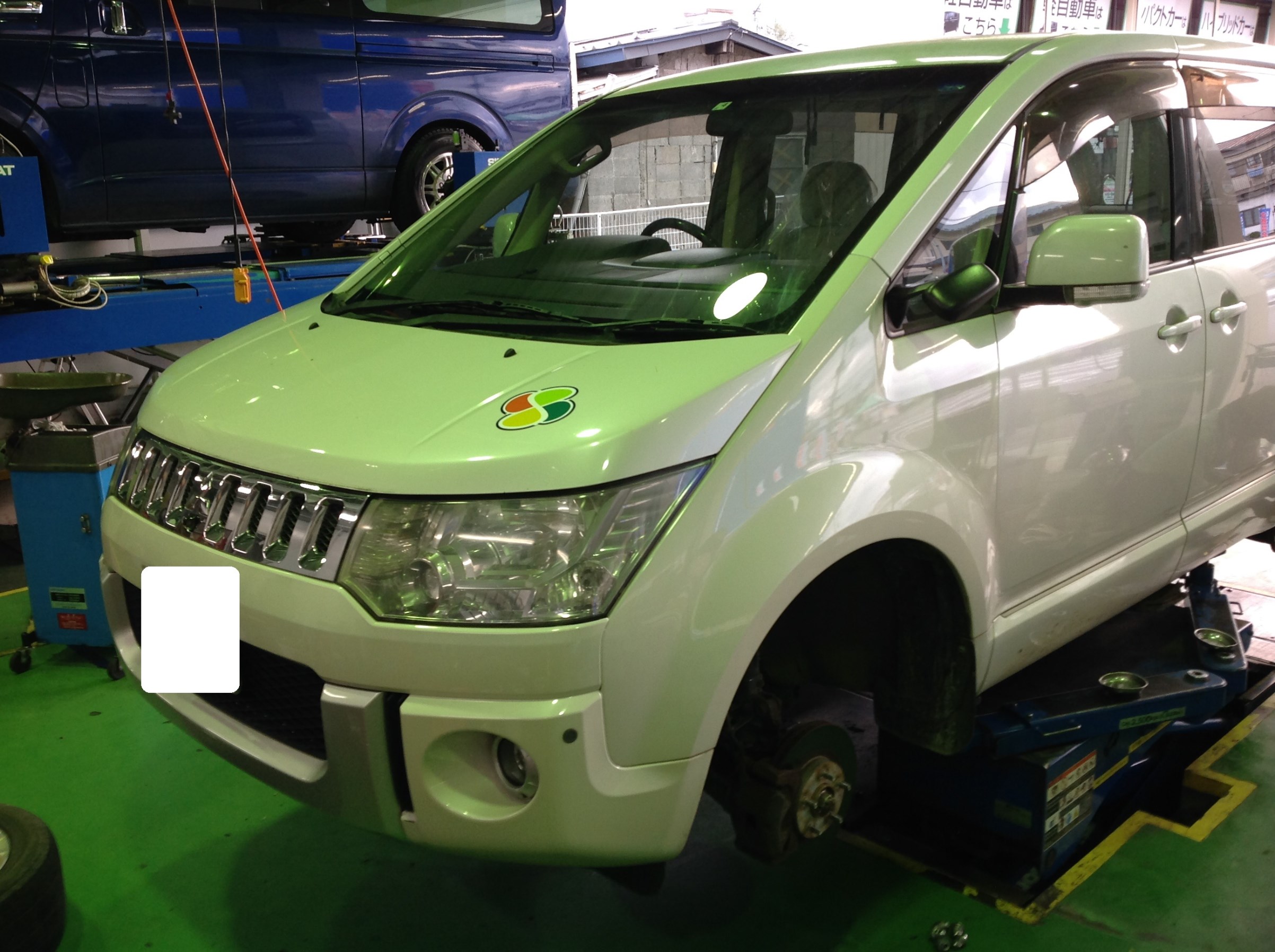今日はデリカD:5のタイヤ交換をしました!奥でアライメント調整をしているのはハイエースです。^^