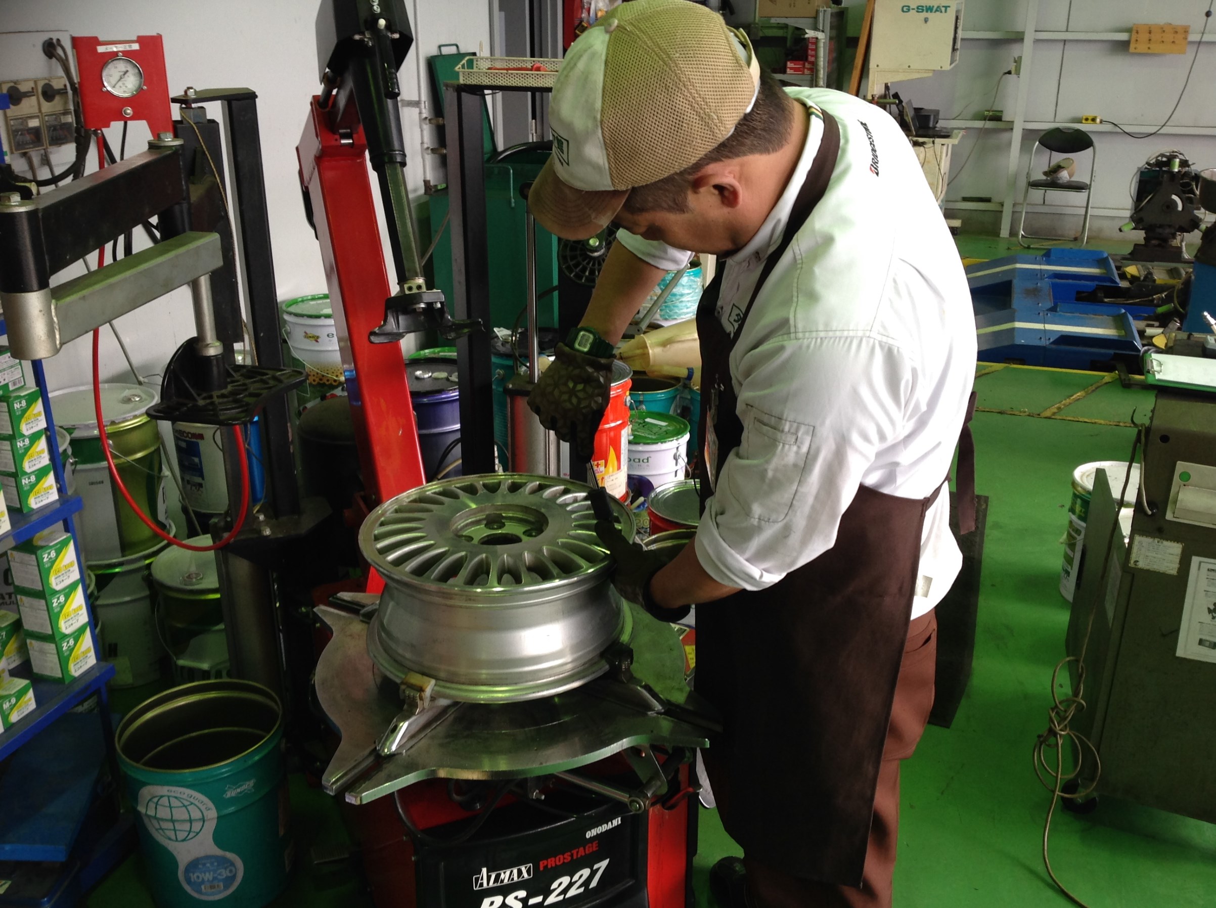 ↓ 中村店長自らタイヤ交換です。 当店のナンバーワンプロフェッショナル!安心ですね。^^