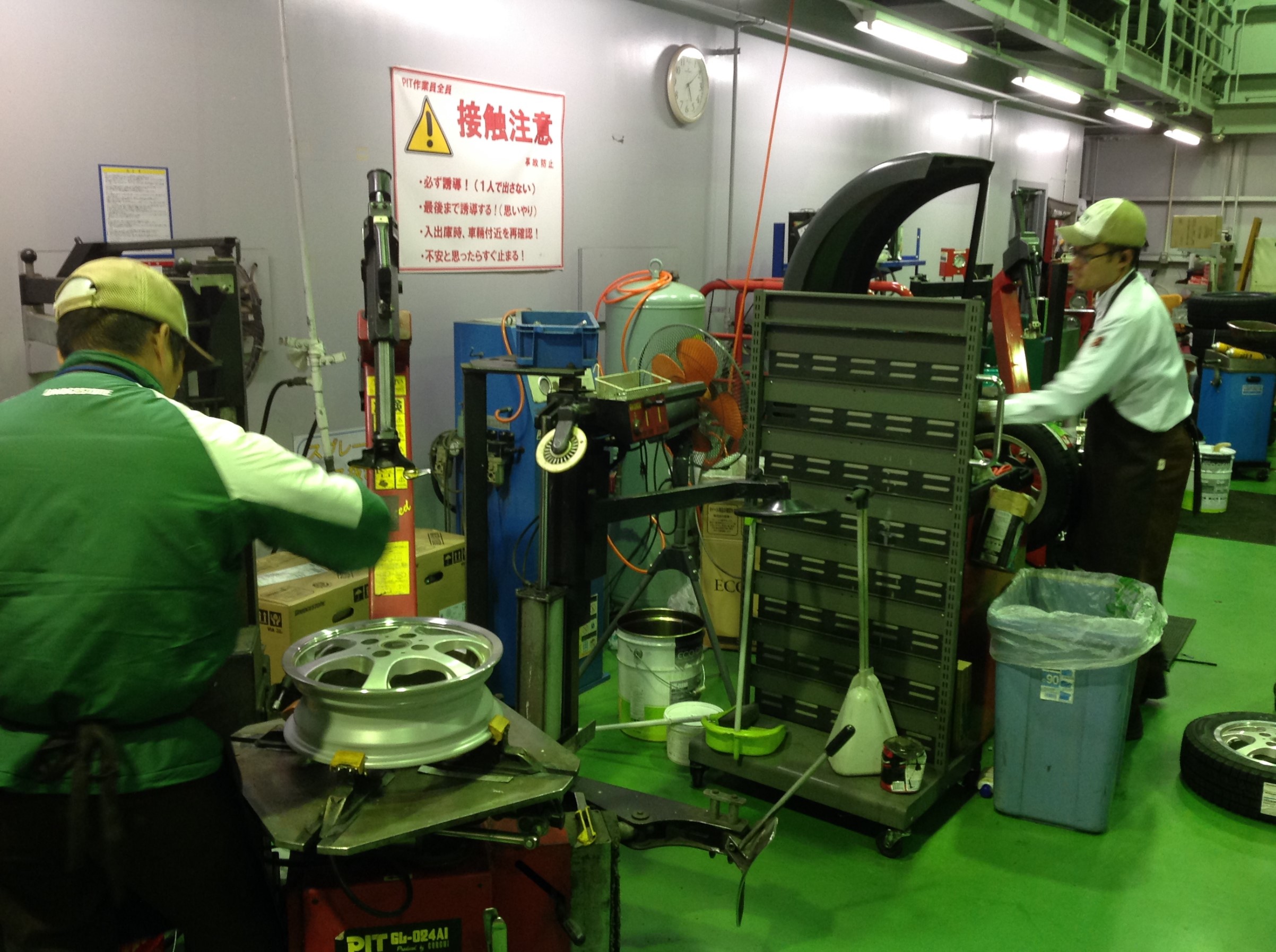 ↑ 今日は冬タイヤへの履き替えをしにきてくださったお客様だけではなく、