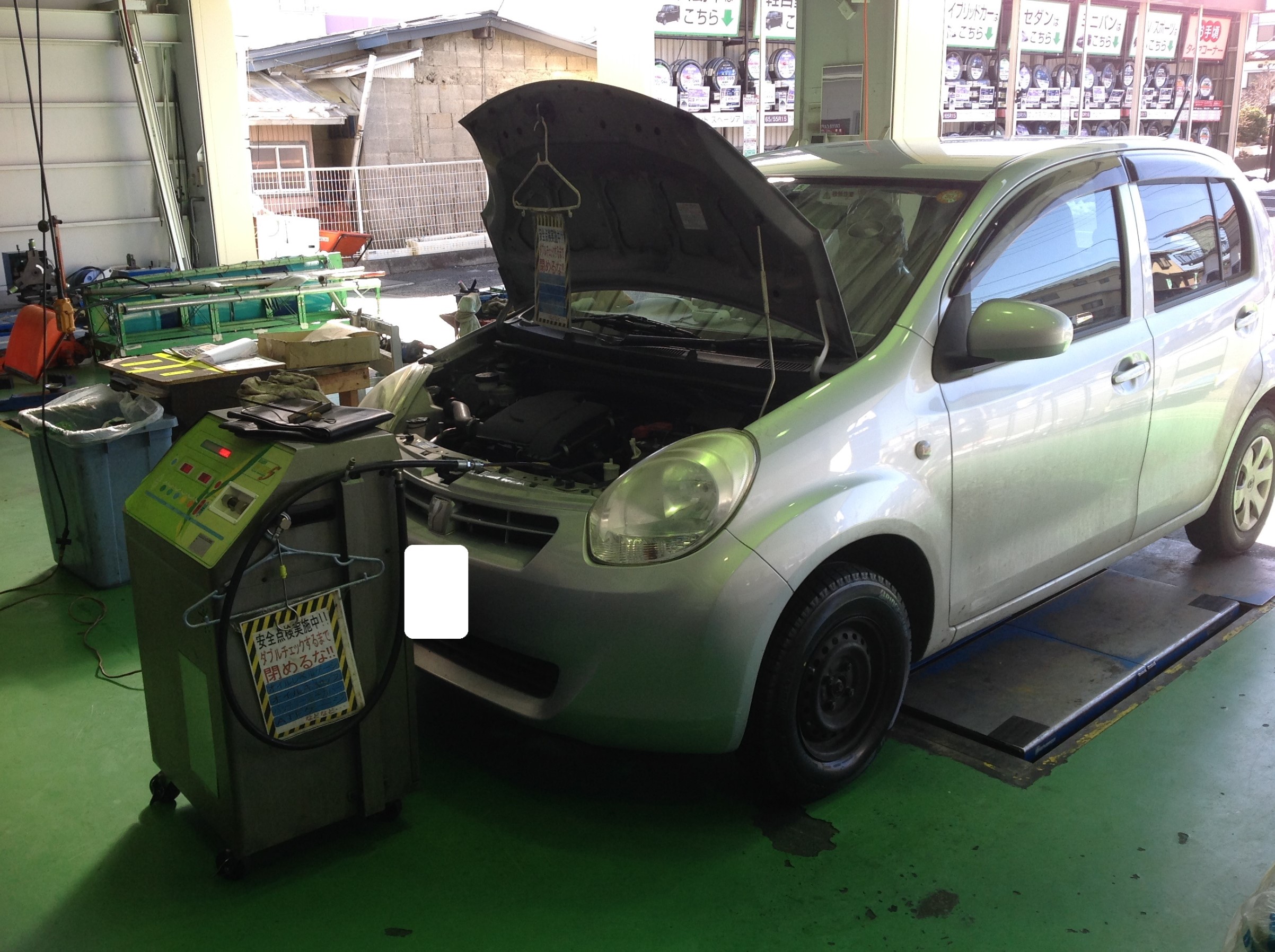 ↓パッソがご来店。距離を走るお客様で、フロント2本をタイヤ交換しました。
