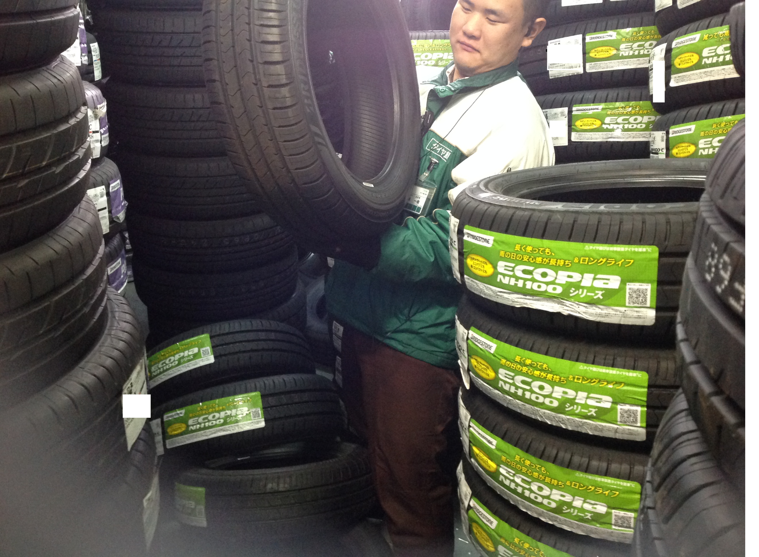 タイヤを積みなおす刑部スタッフ↑