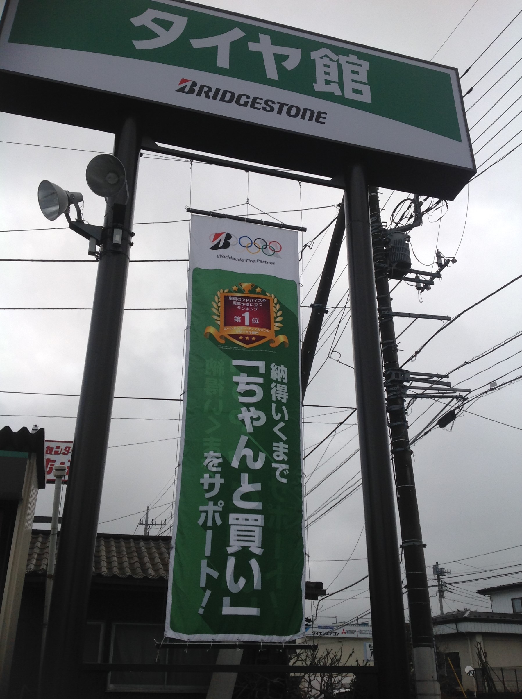 お店の外にある懸垂幕という大きな垂れ幕みたいなものです。
