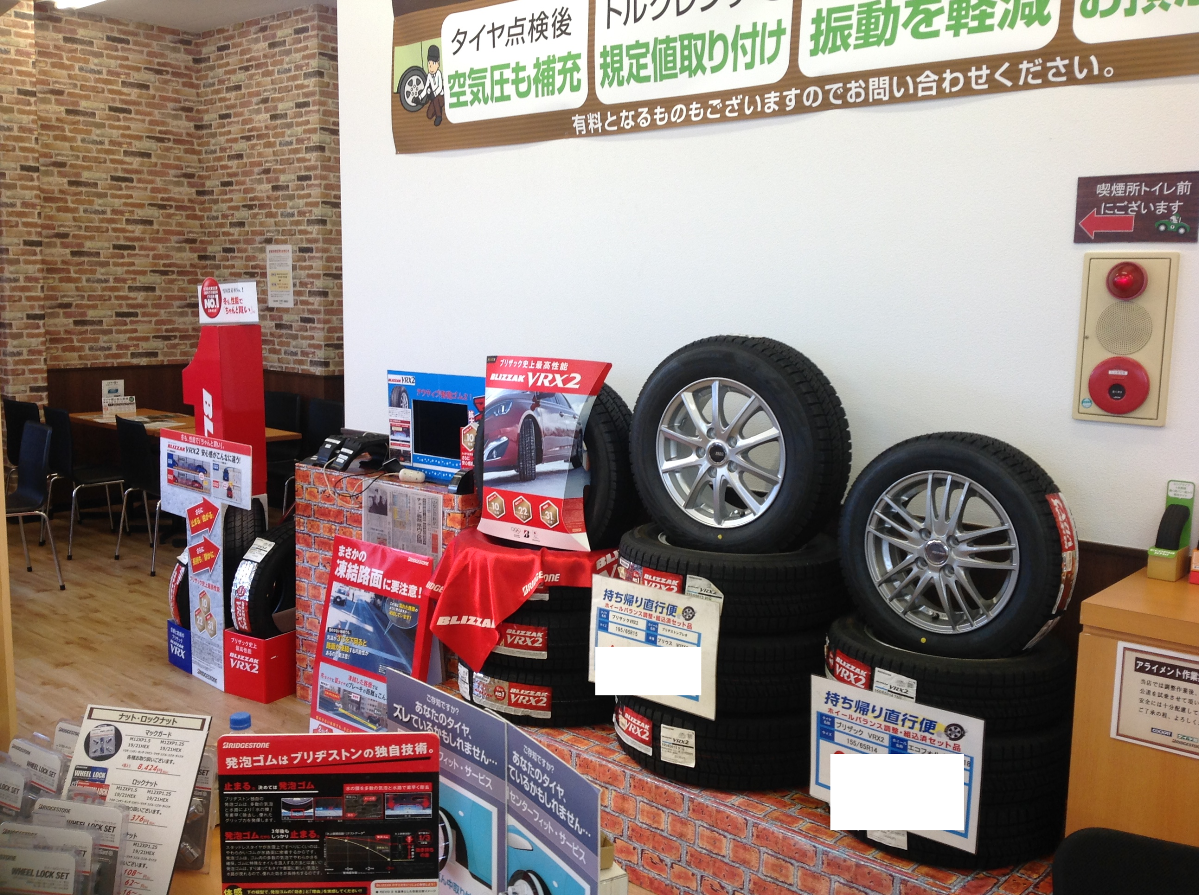 スタッドレスタイヤさんは隅に行ってしまわれた…↑
